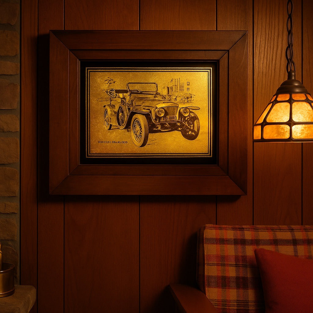1978 Lulu’s Inc. 1909 Rolls-Royce “Silver Ghost” Framed Metallic Art Print – Gold Foil Shine – Made in USA