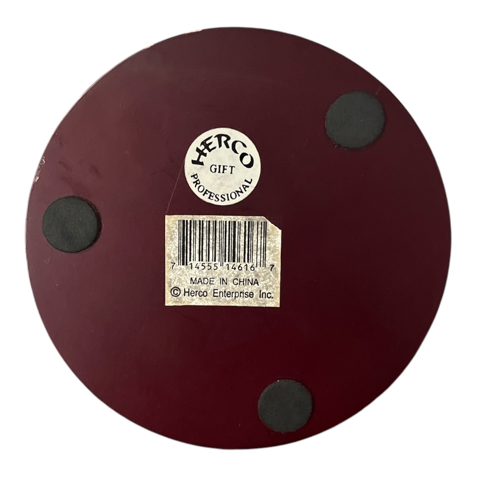 * Base: Dark red wood-tone with original Herco label and barcode