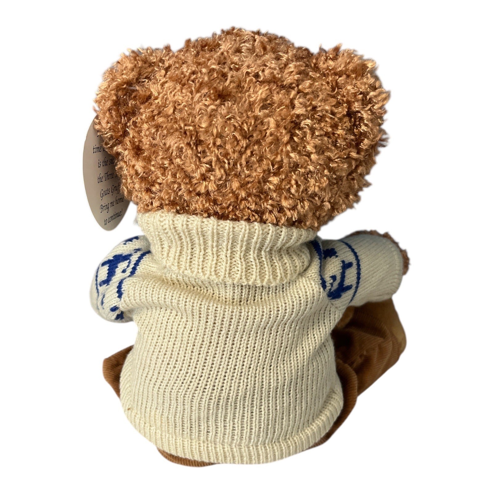 Charming 2003 Jiggles & Giggles storytelling plush bear featuring a father bear reading to a smaller bear while narrating the classic fairy tale Three Billy Goats Gruff. Press the paw to activate a four-minute spoken story. Dressed in a cozy knit sweater, corduroy pants, and plush slippers, this interactive plush makes a wonderful bedtime companion, nostalgic gift, or collectible talking toy.