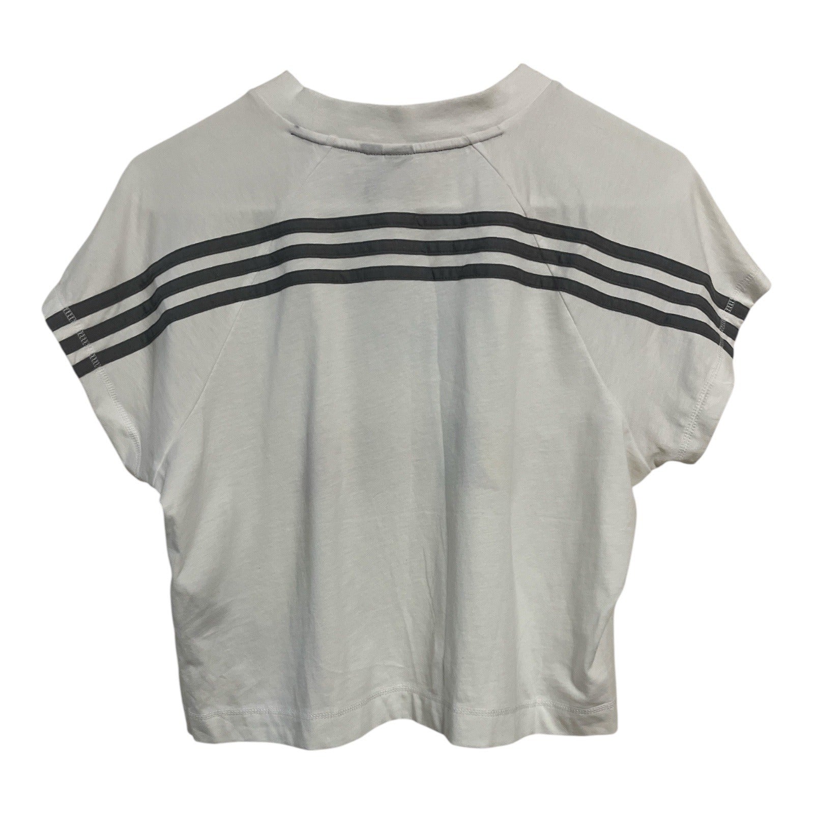 Celebrate school pride and inclusivity with this Adidas FAU “Love Unites” crop top. Featuring the FAU owl logo above a bold rainbow “Love Unites” graphic, this soft white tee combines sporty style with a positive message. The back showcases Adidas’ signature three-stripe design across the shoulders. Appears unused and well cared for.
