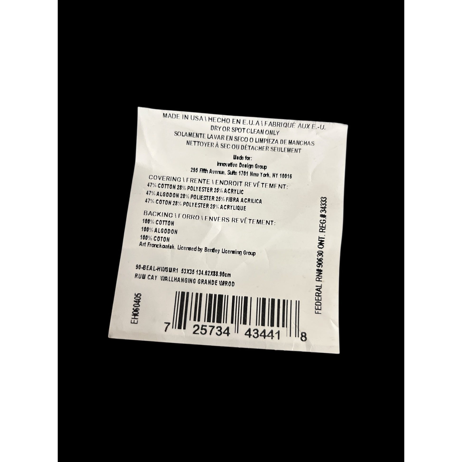 * Backing: 100% cotton with **rod pocket**