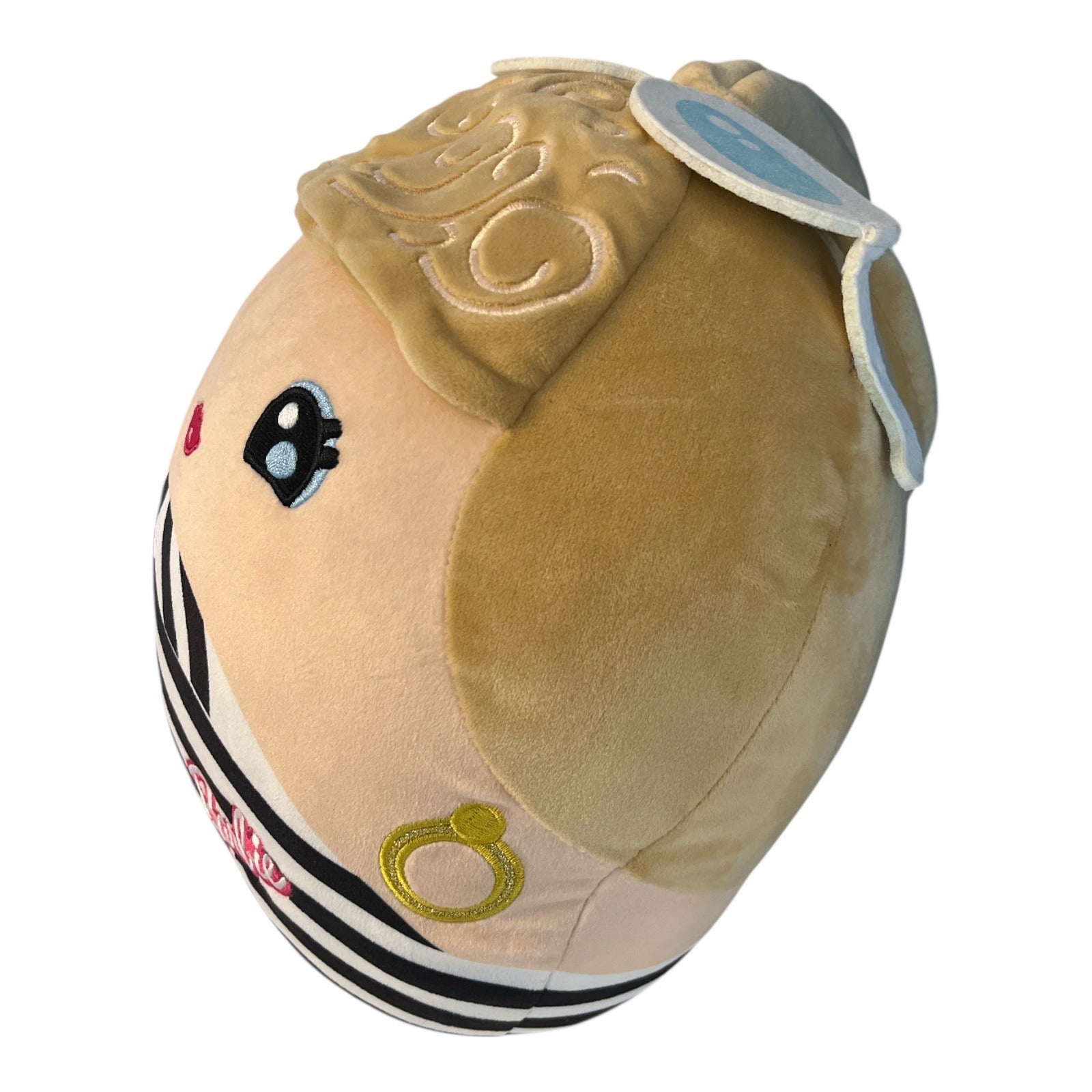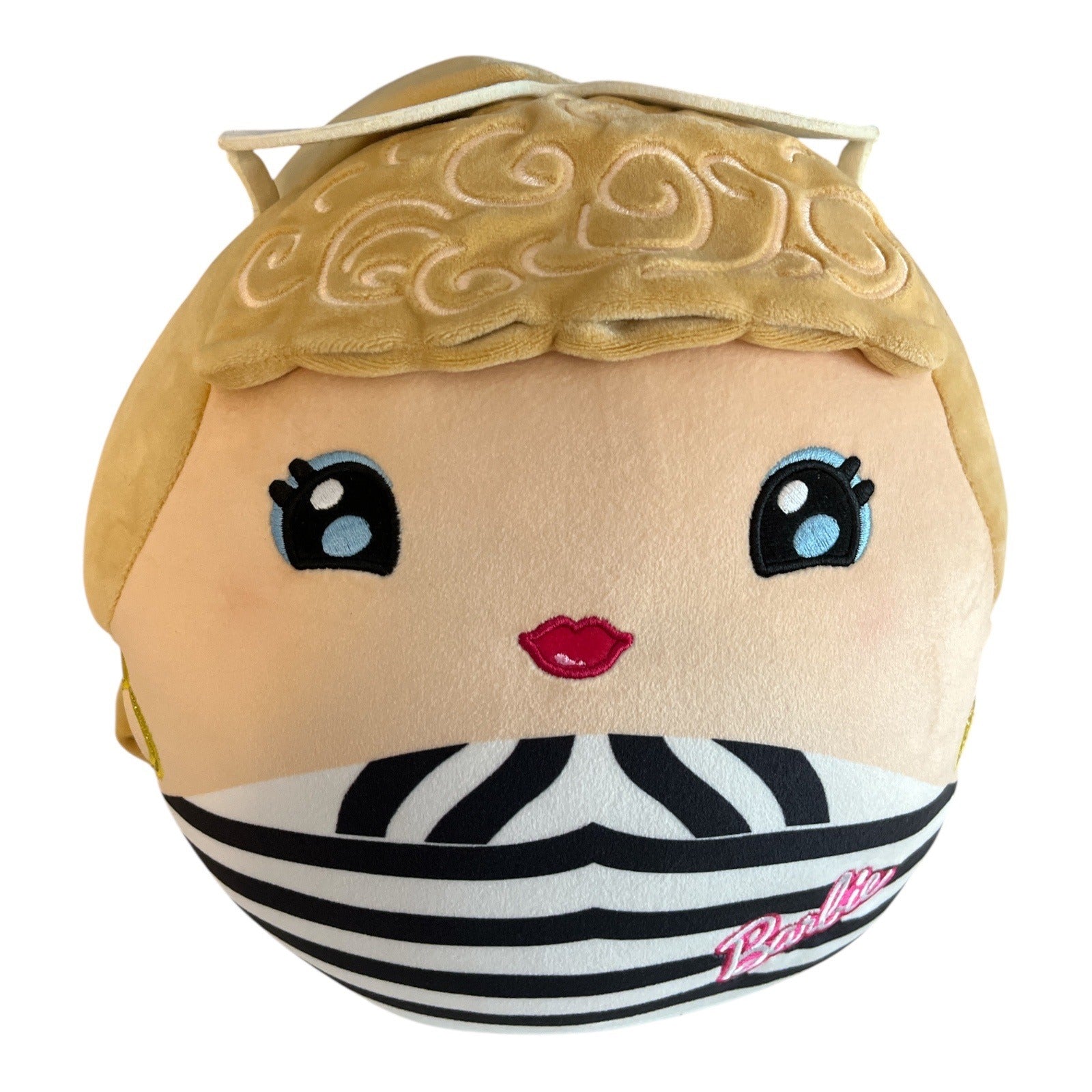 Bring home the charm of Barbie’s iconic debut style with this Barbie Cuutopia 10-inch plush by Mattel (2023 release). This round, huggable plush pillow doll celebrates Barbie’s original 1959 look, featuring her classic blonde hair, red lips, and black-and-white striped swimsuit with embroidered Barbie logo. A soft oversized bow and felt sunglasses complete the retro-inspired design.