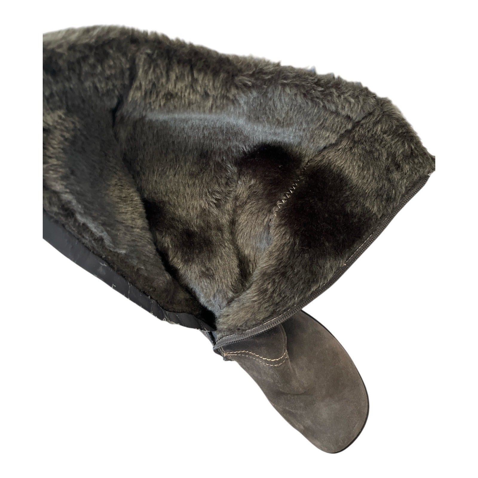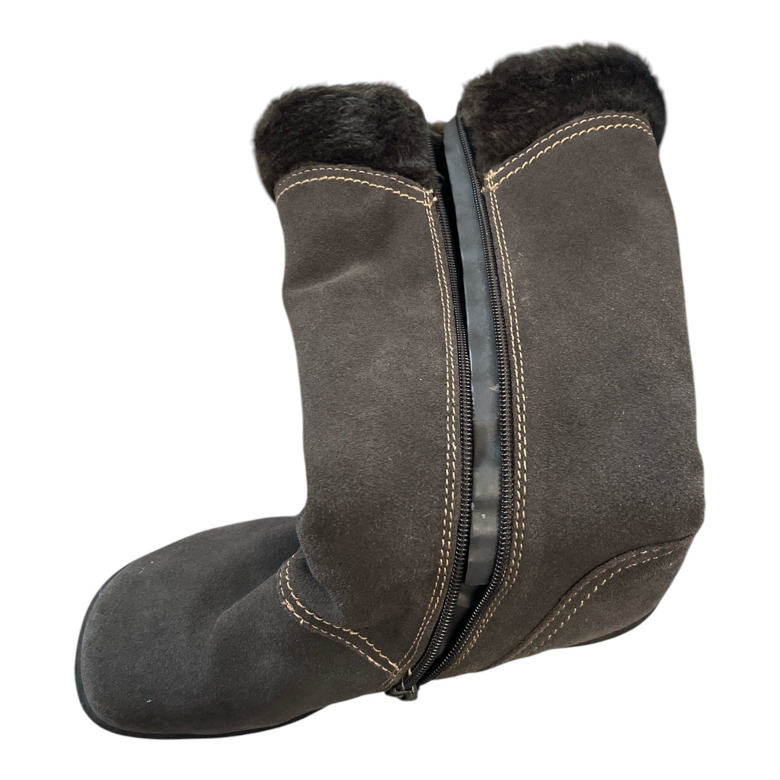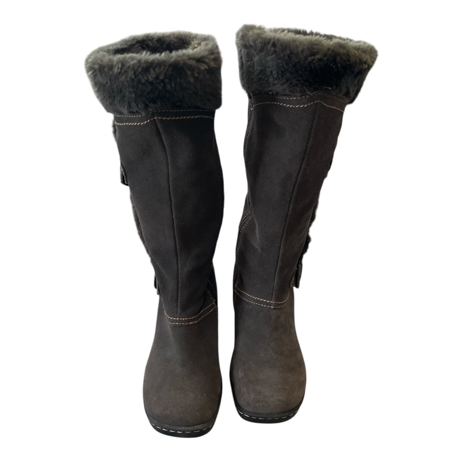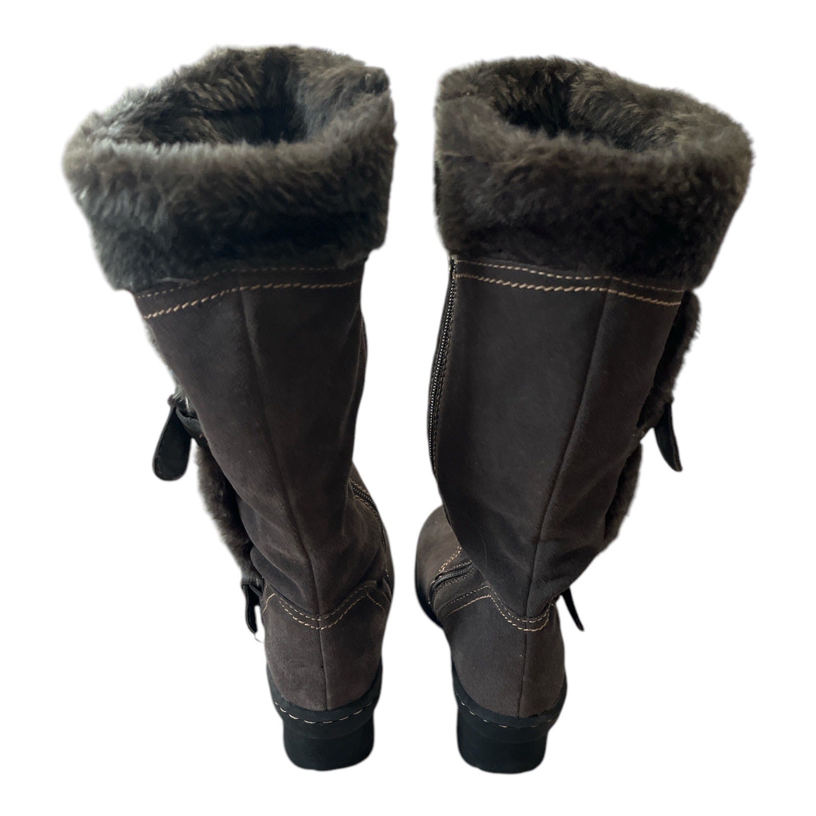 Beartrap Cathy Suede Fur-Lined Mid-Calf Boots Size 7.5 With Buckle Accents & Non-Slip Soles Brown