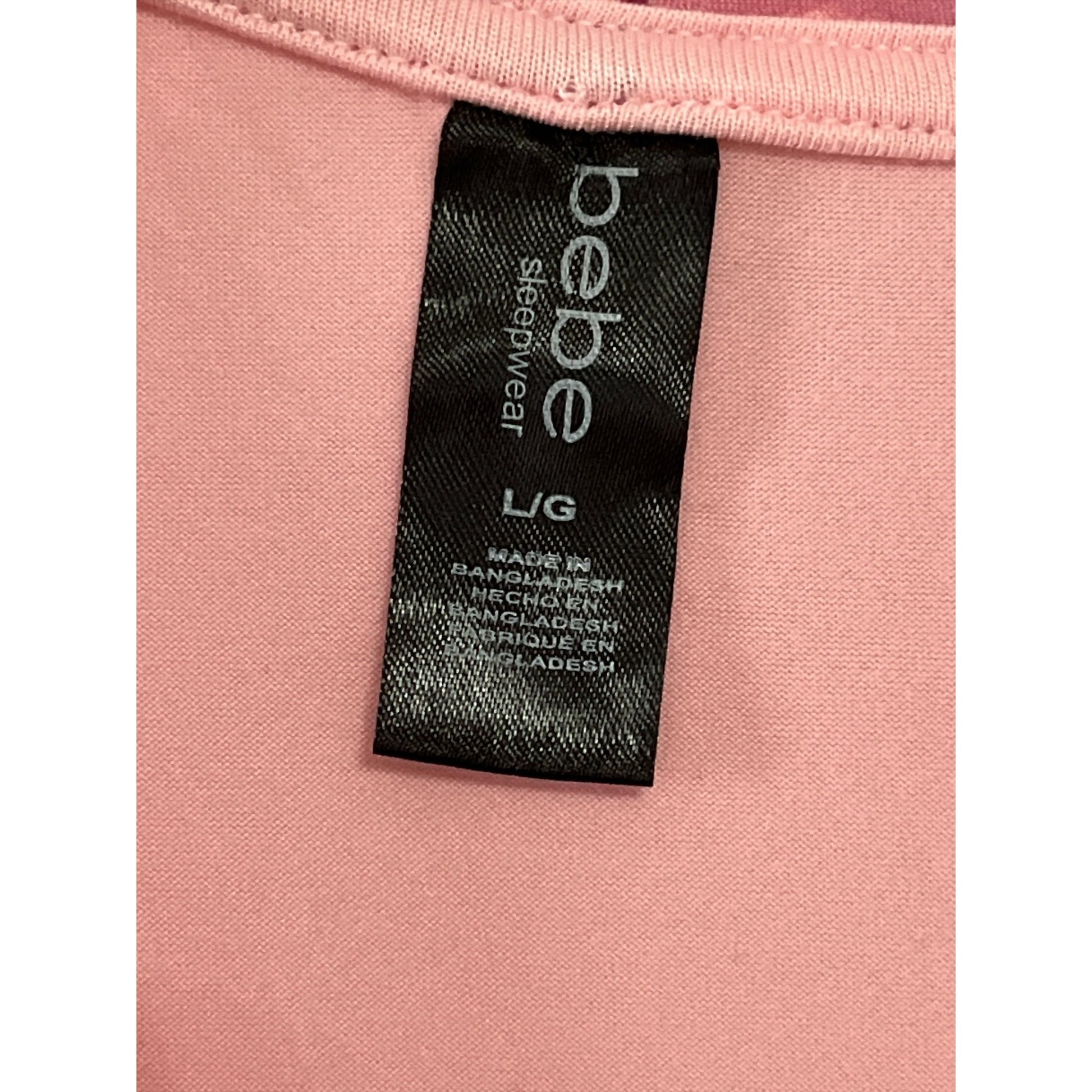 Bebe Pink Sleepwear Robe with Floral Trim and Rhinestone Logo – Size L