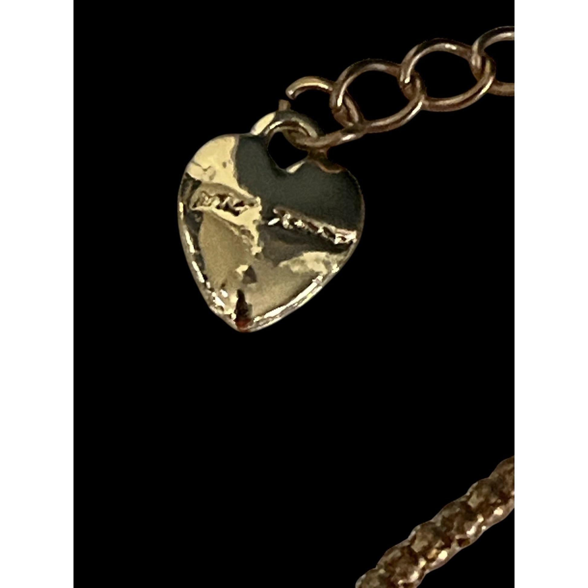 Betsey Johnson statement necklace from the early–mid 2000s Y2K era. This whimsical crawfish or shrimp pendant sparkles with teal rhinestones on a gold-tone chain, finished with her signature signed heart charm. A collectible piece that captures Betsey’s bold, playful style.