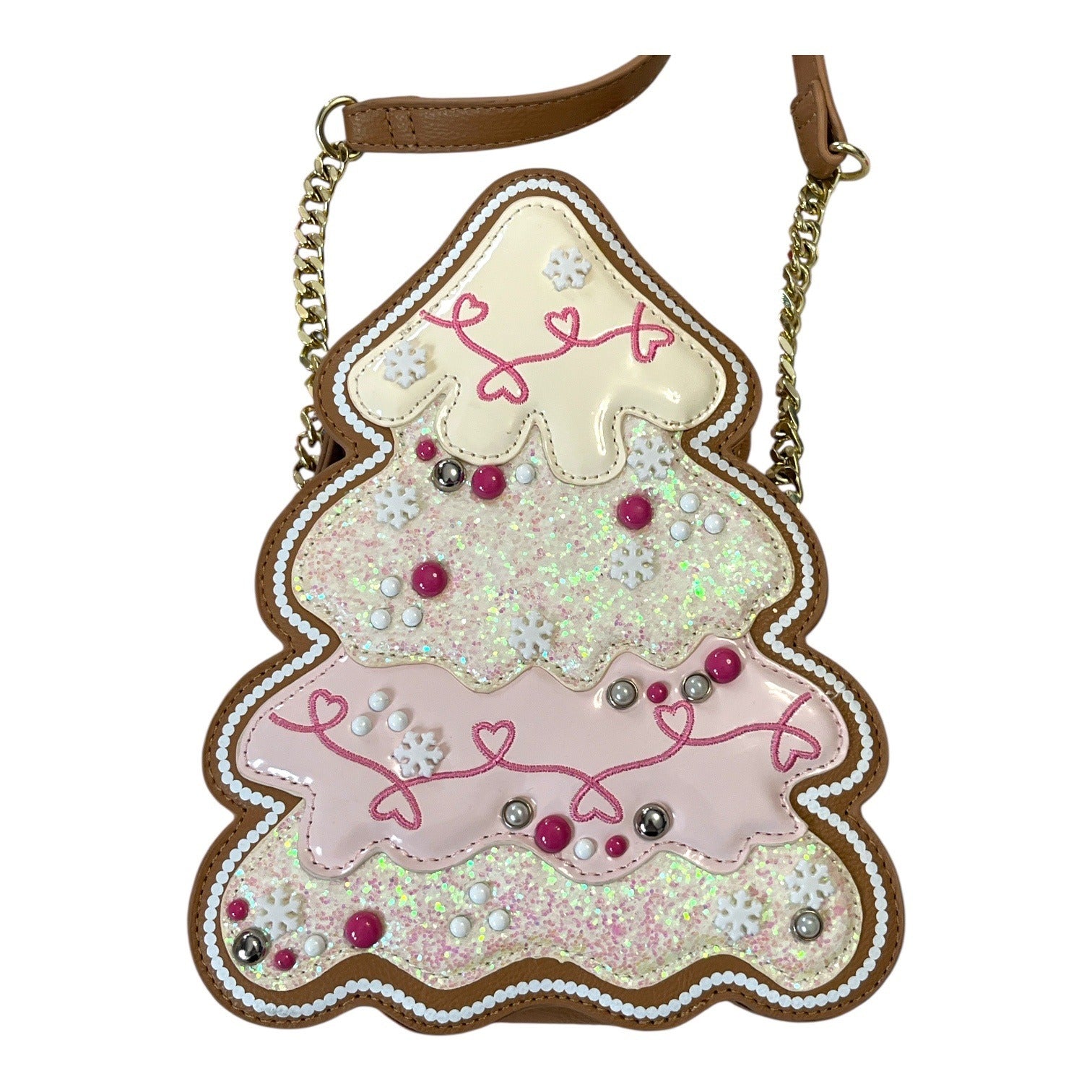 Betsey Johnson Gingerbread Christmas Tree Crossbody Bag Holiday Purse Pink Frosting