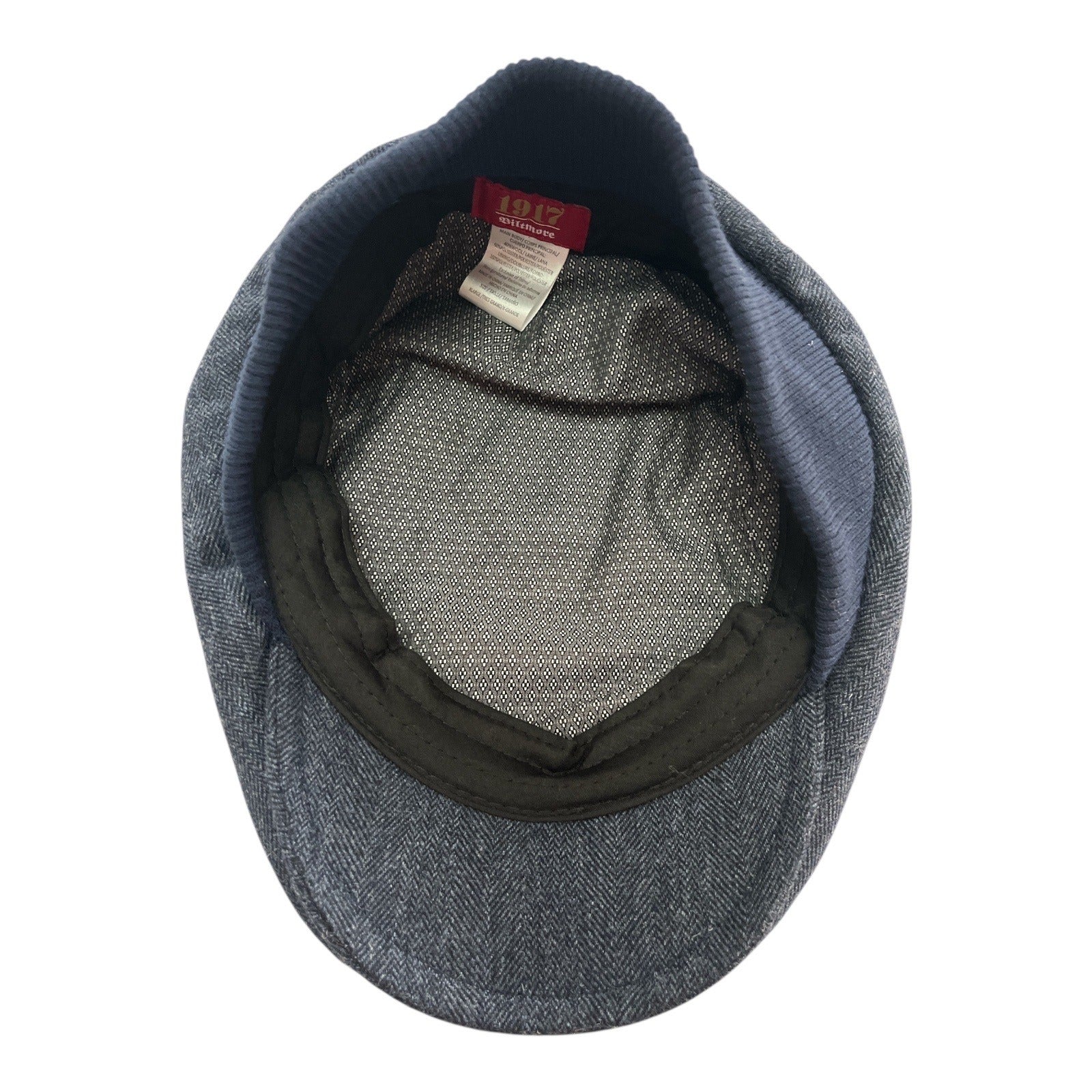 Classic and timeless Biltmore 1917 men’s flat cap crafted from a soft wool-blend herringbone fabric. Features a structured bill, cozy rib-knit back for comfort and fit, and a sleek navy blue pattern. Perfect for cool weather wear or vintage-inspired styling.