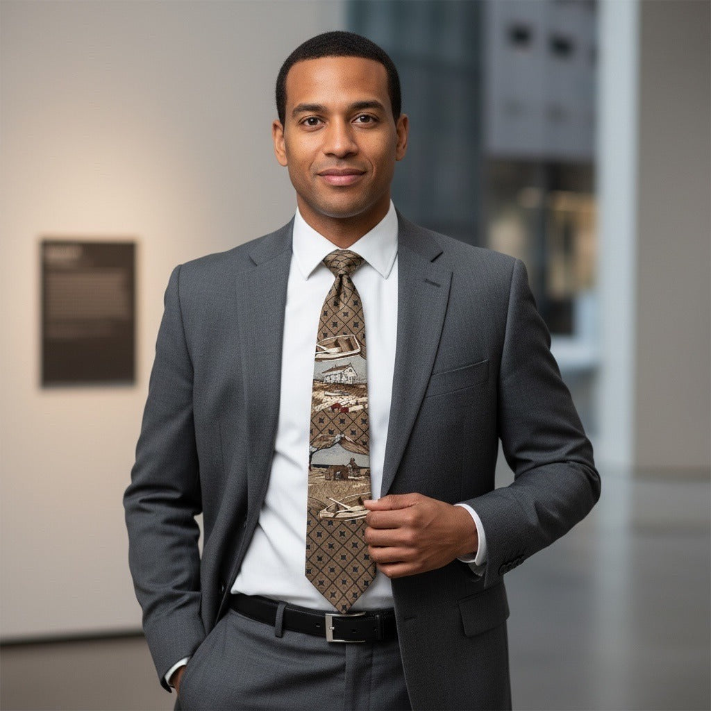 Bob Timberlake Bee Line Silk Necktie Americana Boats Scenic USA