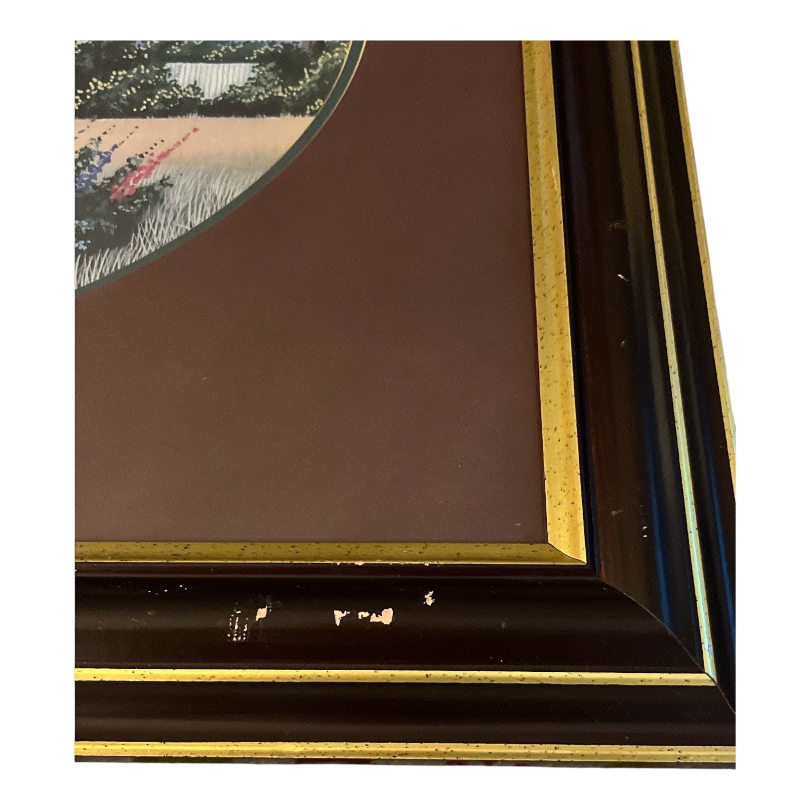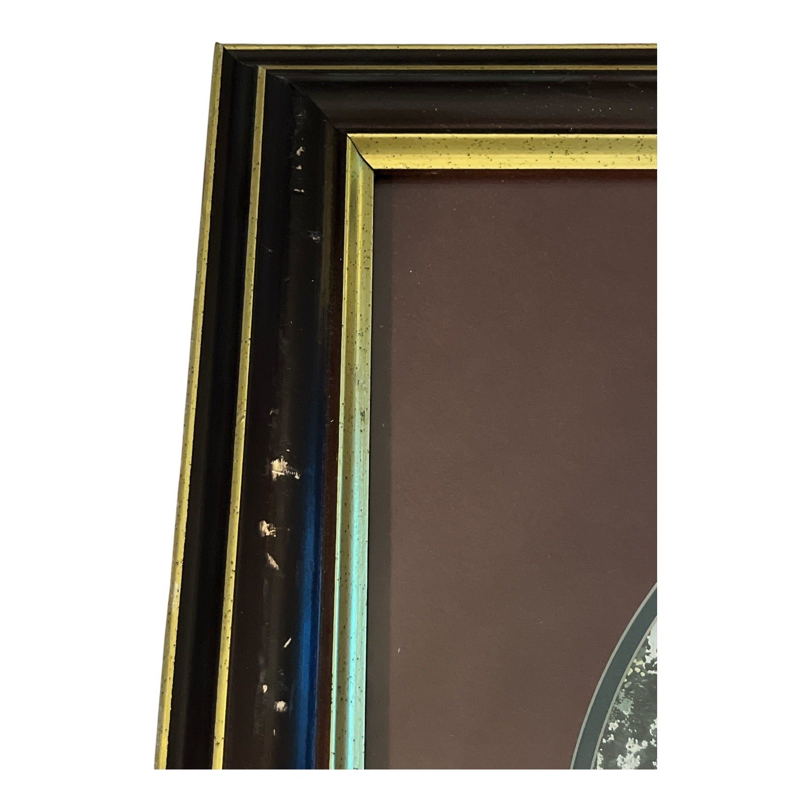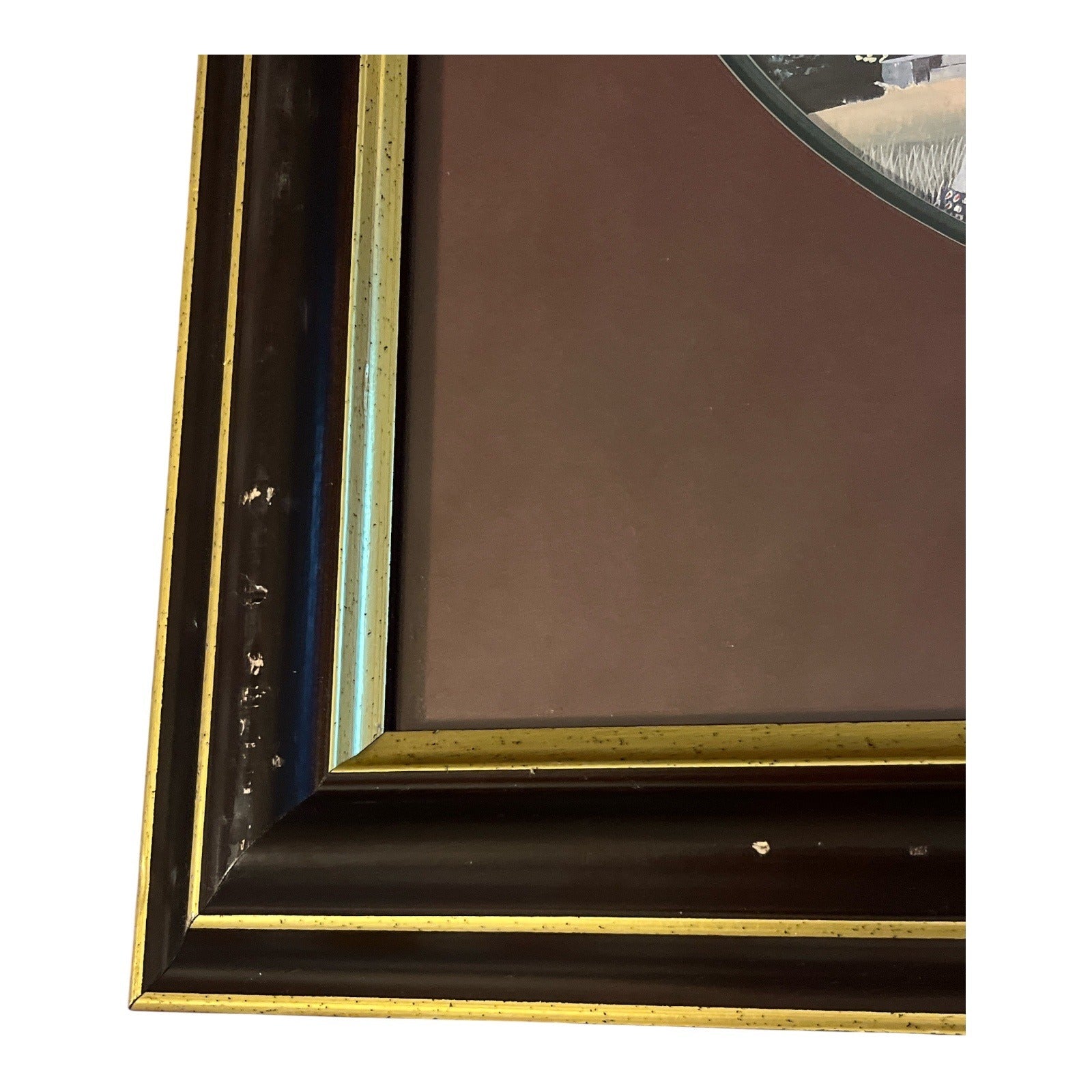 * Original framing with glass, mat, and gold-accented wood frame