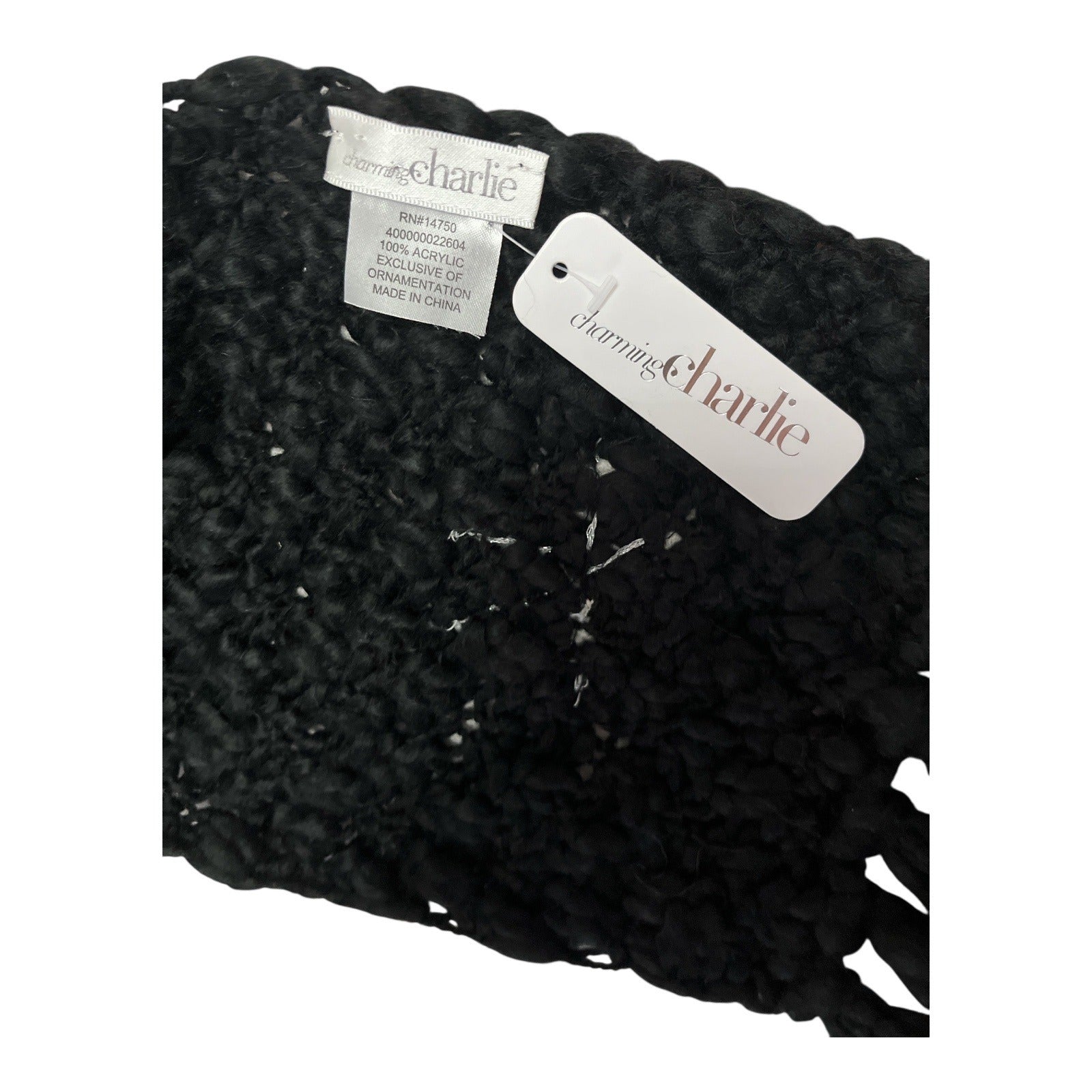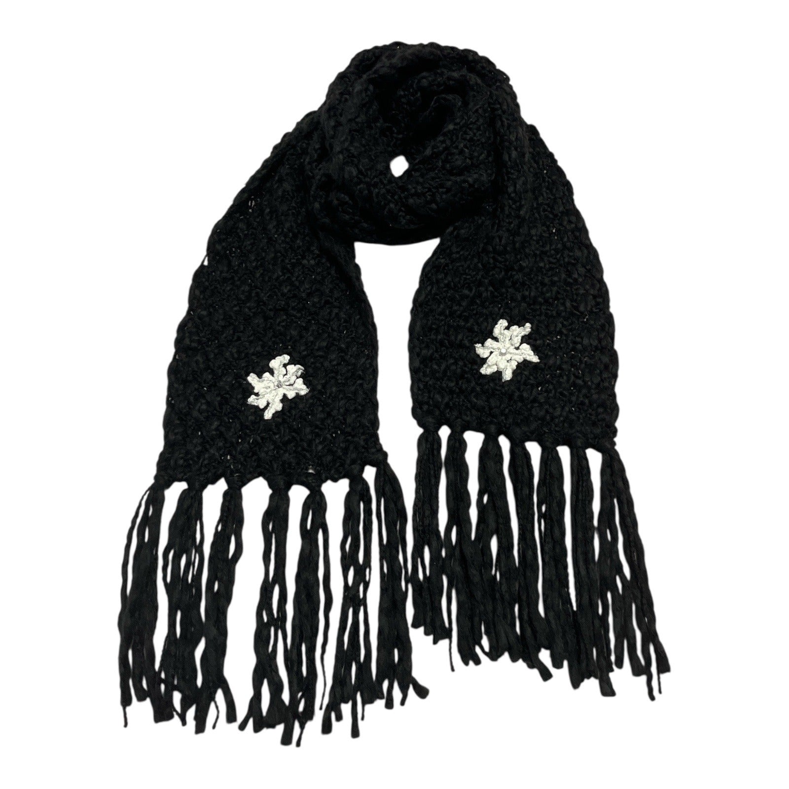 Charming Charlie Black Knit Scarf with Snowflake Appliqué – 94” Long with Fringe – NWT – 2010s Era