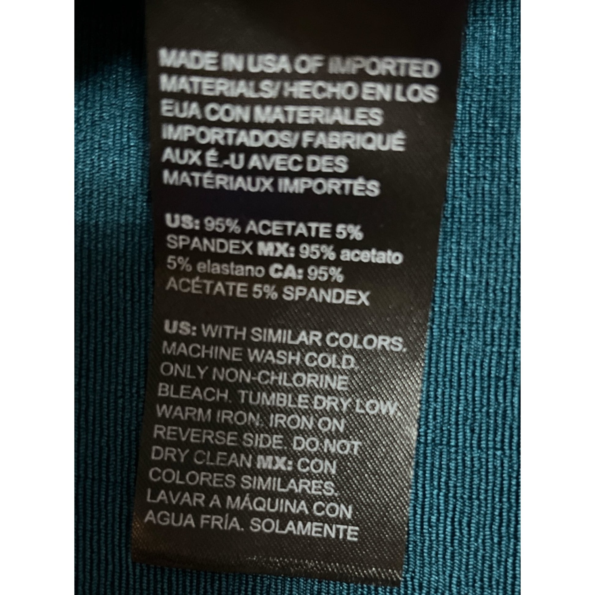 Classic Chico’s Travelers line short-sleeve top in a rich teal shade. Features a soft, slinky acetate-spandex blend with a front draped knot design for an elegant and flattering look. Made in the USA of imported materials.