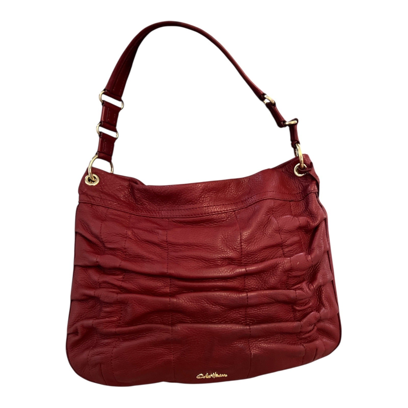 Cole Haan Red Leather Shoulder Bag – Ruched Design – Gold Hardware - 2010s