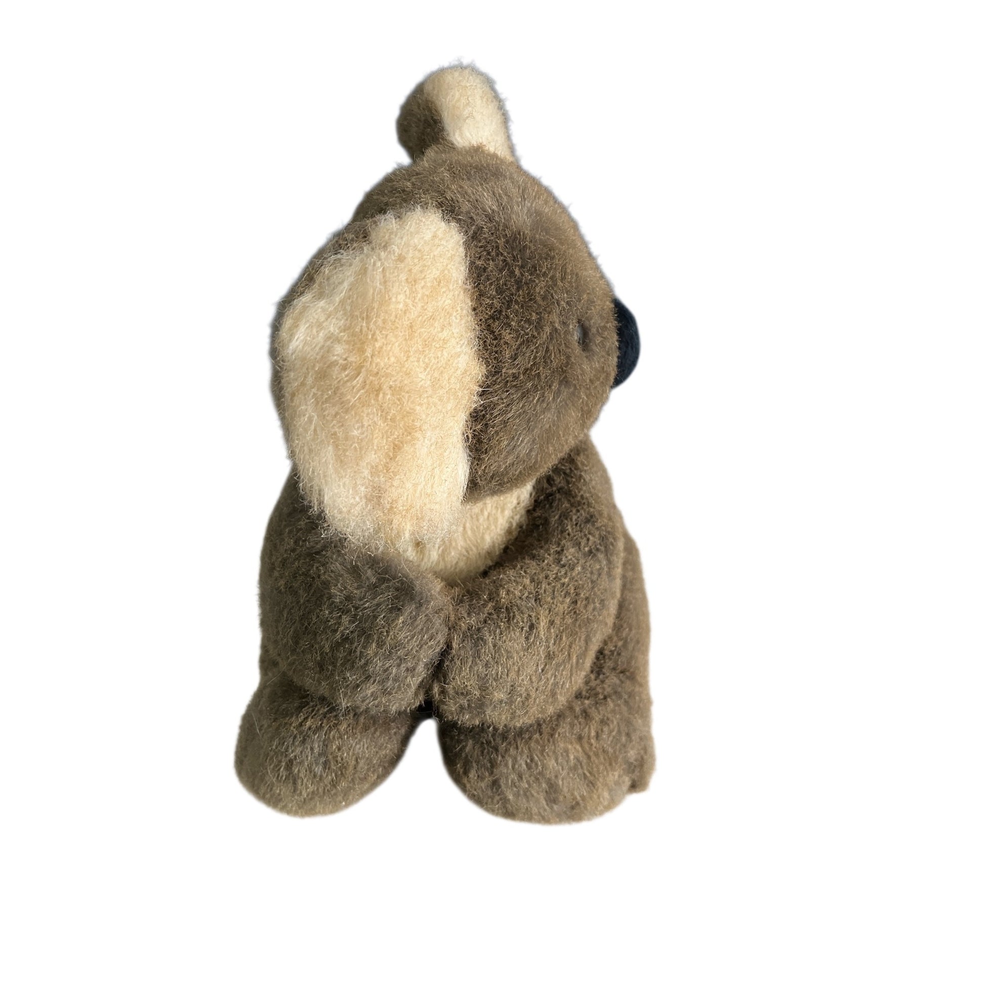 Vintage Dakin Soft Classics koala bear plush from 1987. Features a classic seated pose with soft brown and tan fur, rounded ears, and a simple, timeless design. Made by Dakin in San Francisco and produced in Thailand. An attached gold elastic loop remains at the front of the neck, originally used to hold a cardboard hang tag (tag no longer present). A nice example for collectors, nursery decor, or display.