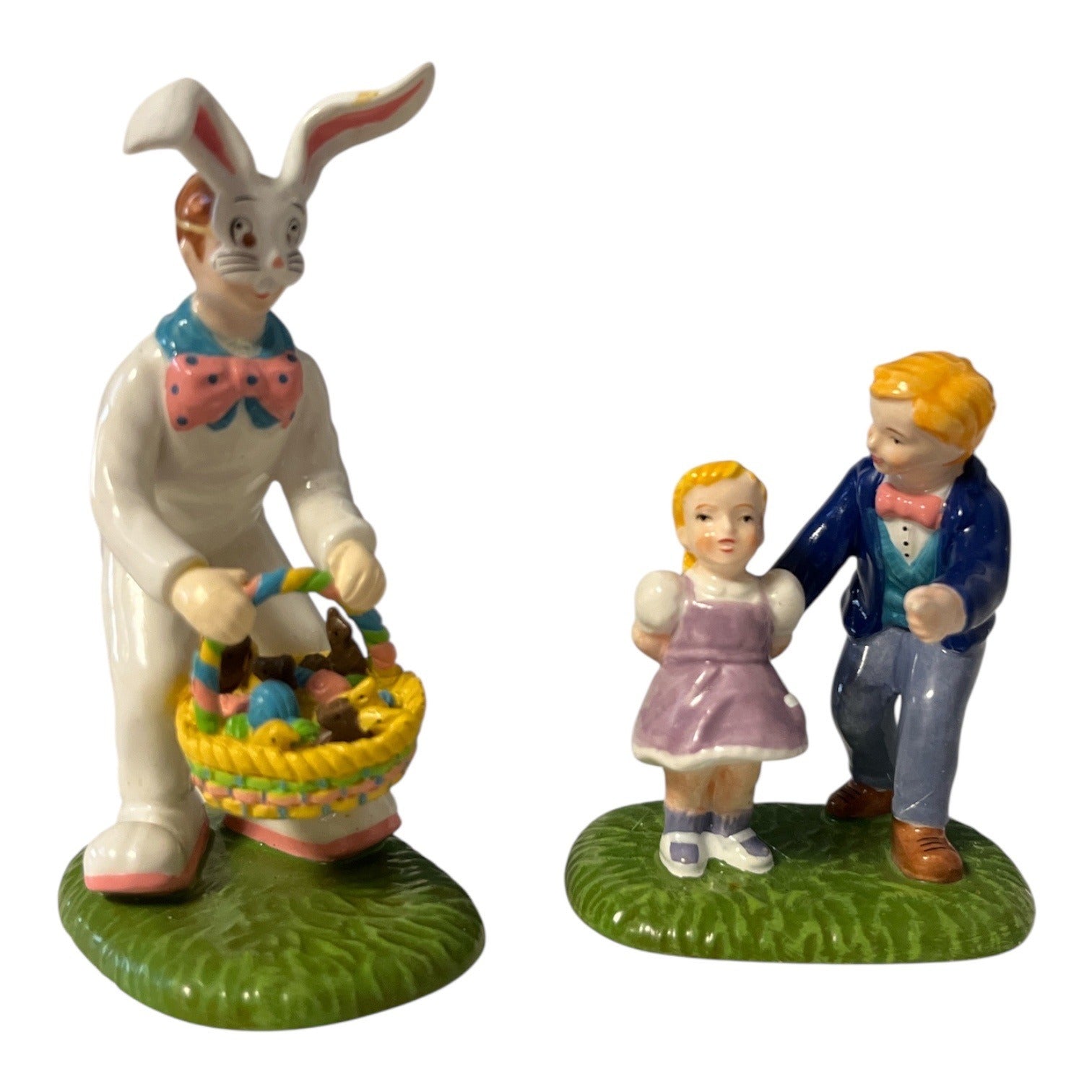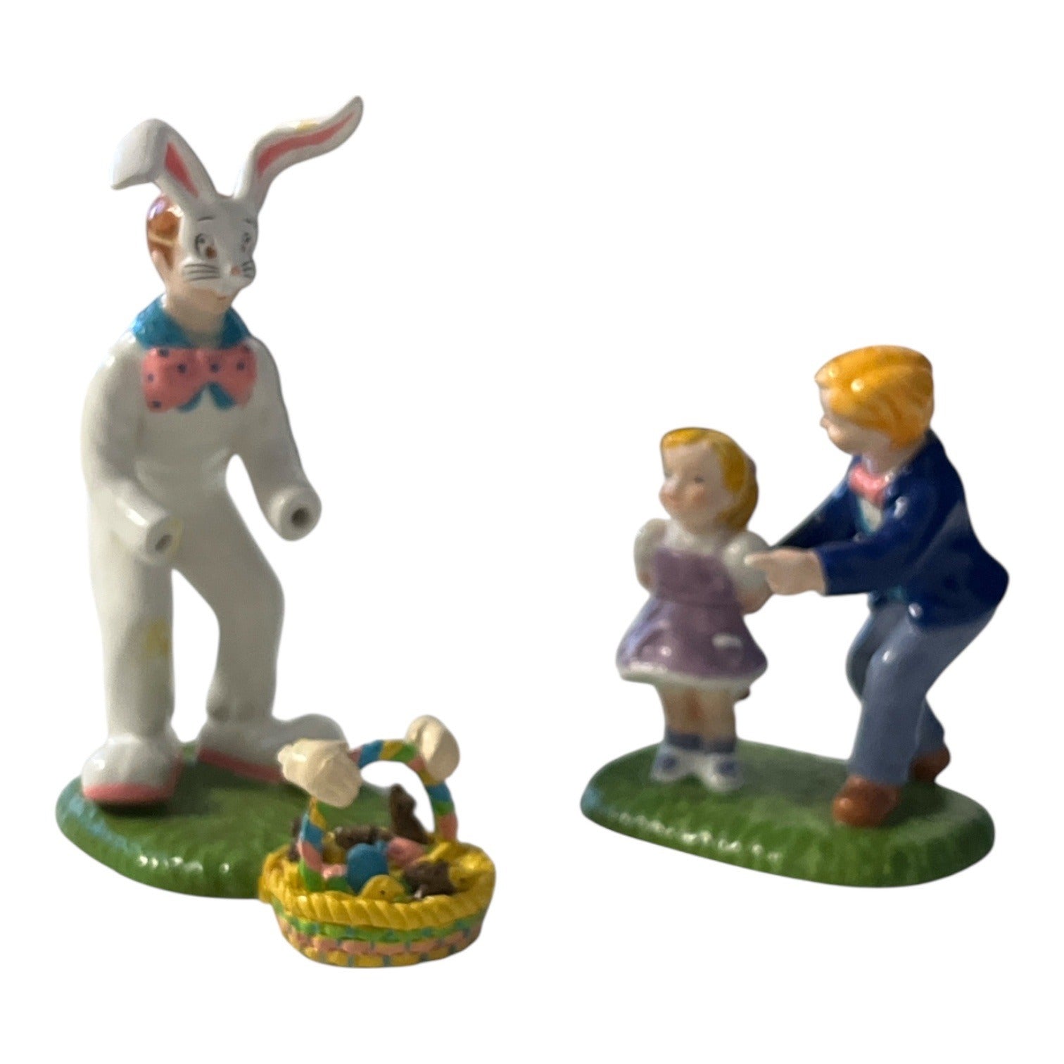 Good condition. Building is clean with light display wear. Light cord included and working. Includes original add-on figurines in their separate box. Bunny figure’s hands with basket detach but are not broken and can be repositioned. Boxes show storage wear and have writing in one corner (not shown in photos).