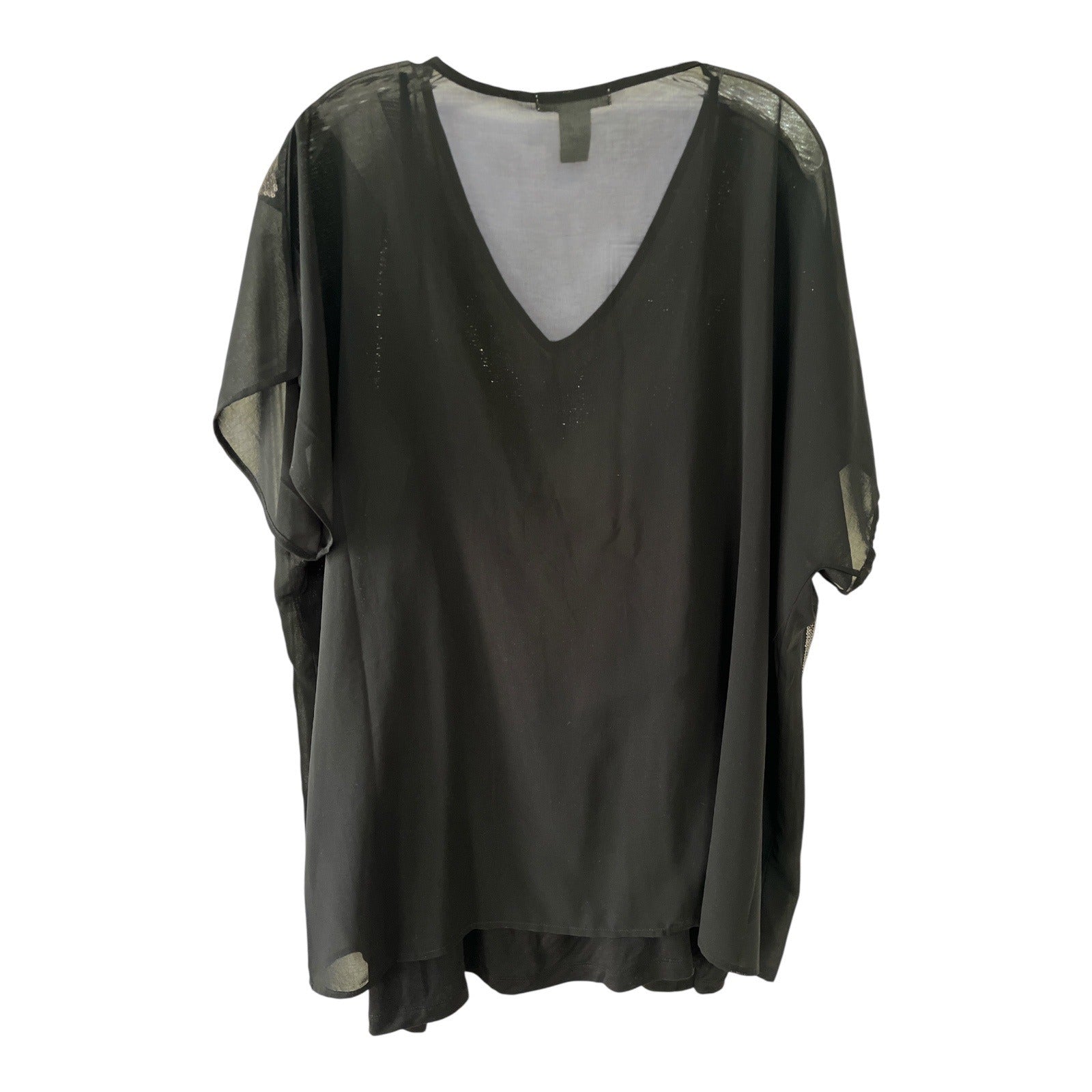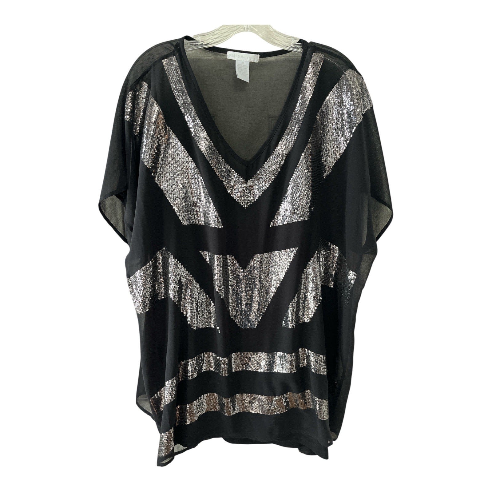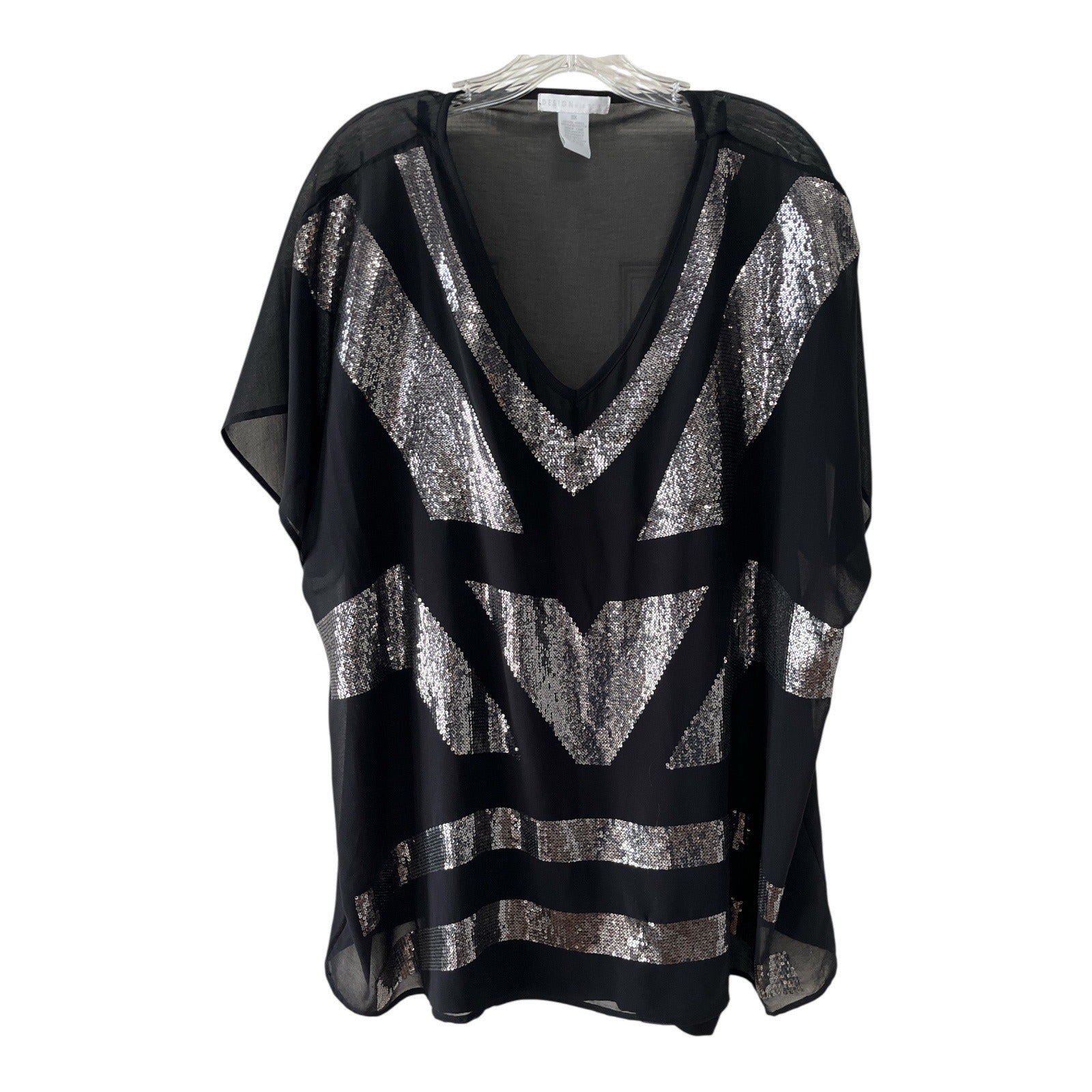 Design History Women’s 3X Black Sheer Sequin Tunic Top with Built-In Camisole, V-Neck, 2010s