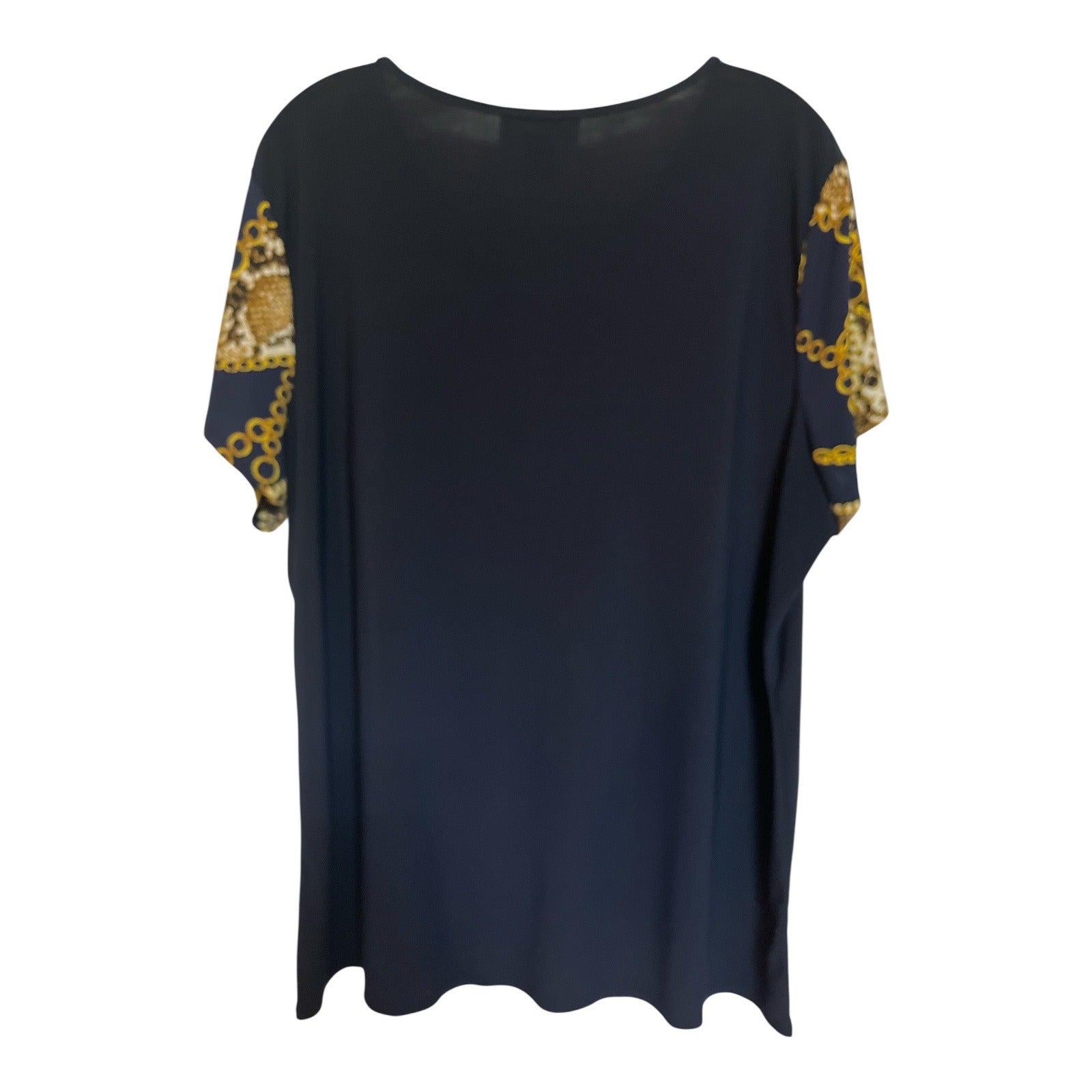 Diana Belle Women’s Plus 2X Blouse – Navy Chain & Snakeskin Print Top Short Sleeve