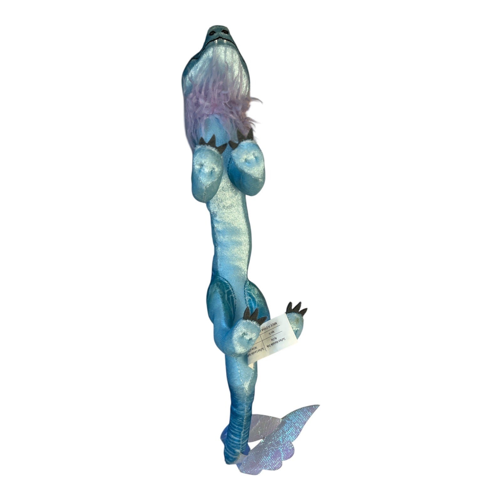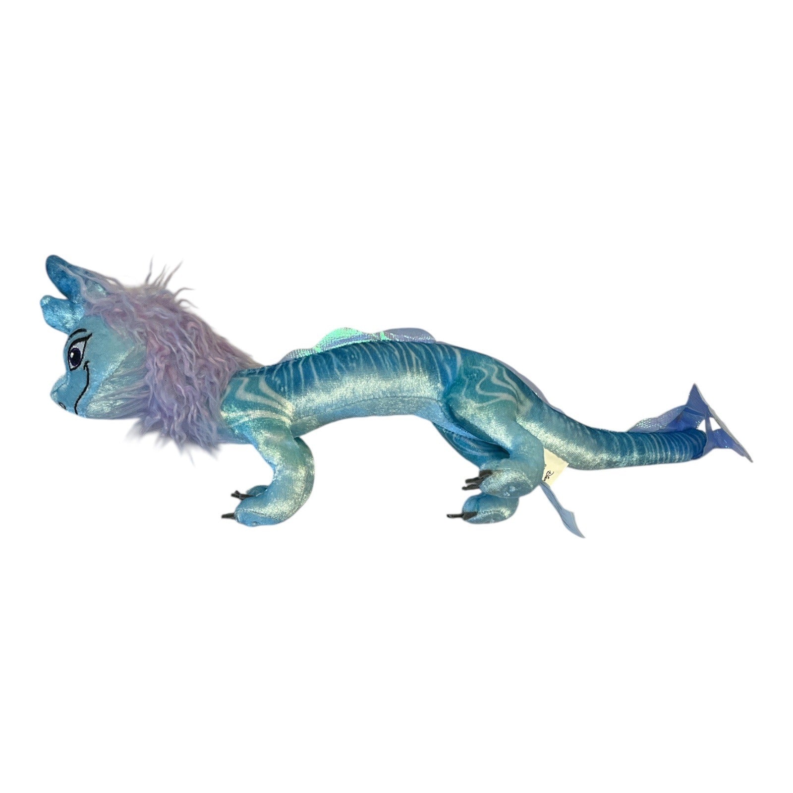 Bring home the magic of Kumandra with this plush Sisu dragon from Disney's *Raya and the Last Dragon*. Manufactured under license by Just Play, this iridescent blue and lavender plush features a velvety finish, fluffy mane, and shimmering details. Sisu's expressive embroidered eyes and soft body make her a perfect cuddle companion or collector's piece.