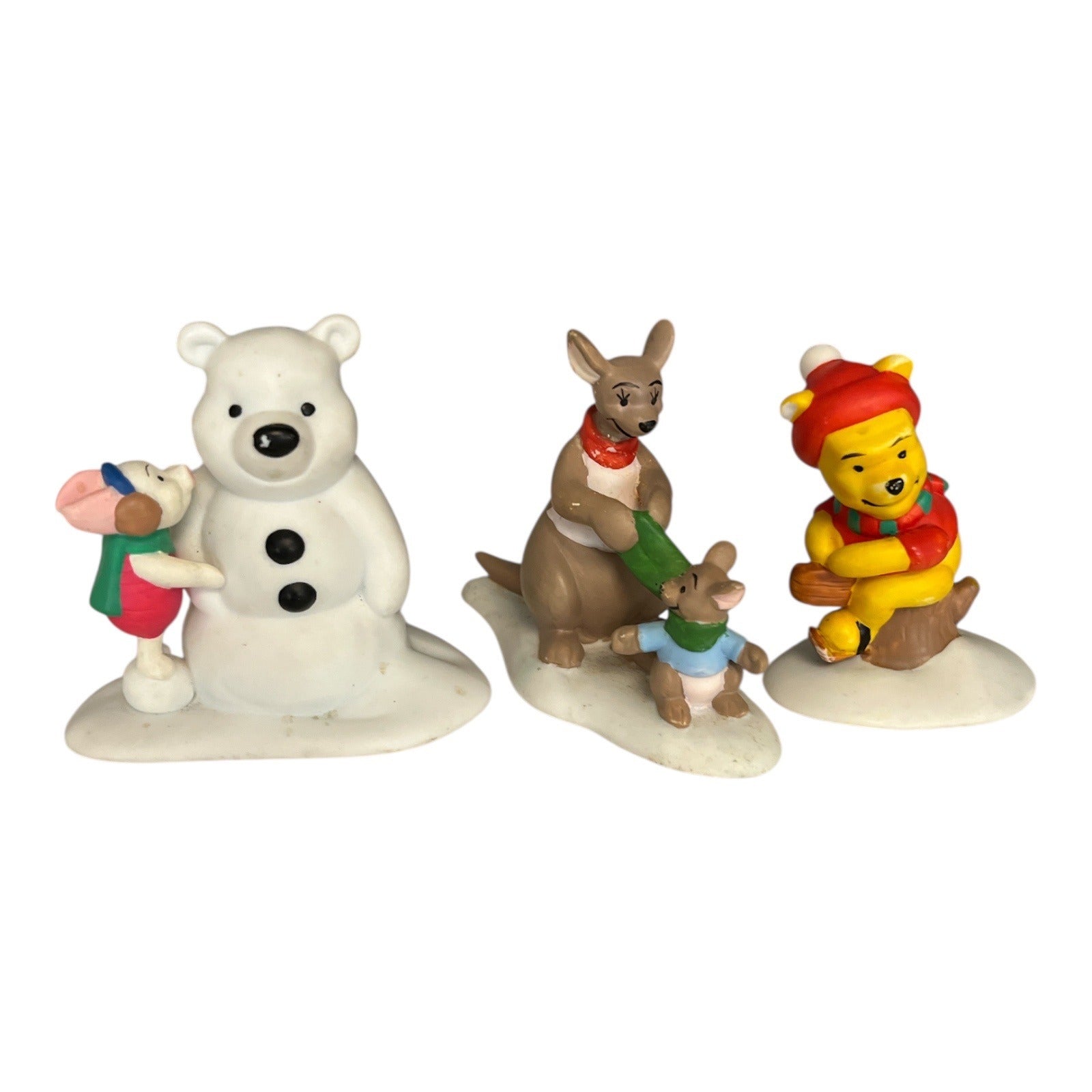 Disney Winnie the Pooh Winter Figurine Set – Piglet, Pooh, Kanga & Roo – Christmas Snow Theme – 3 Pieces