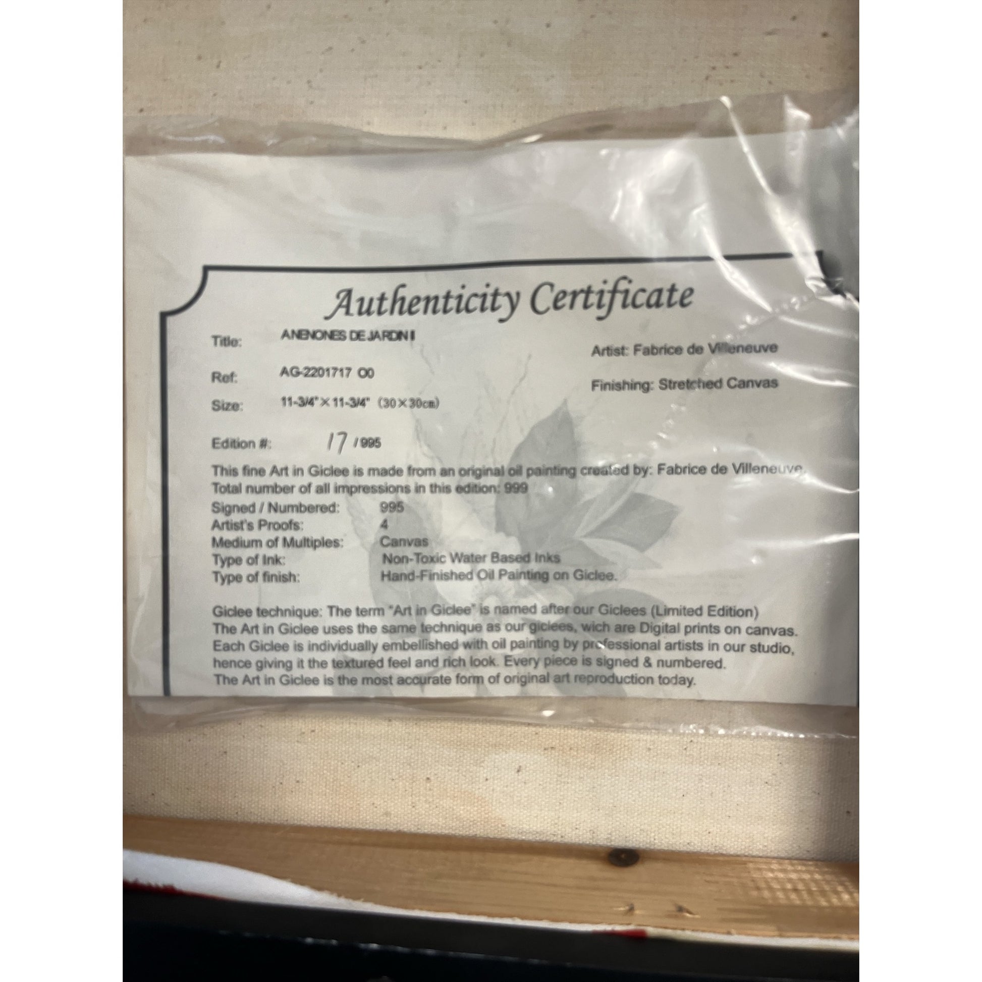 Fabrice de Villeneuve Anémones de Jardin Limited Edition Giclée Canvas Framed Floral Wall Art