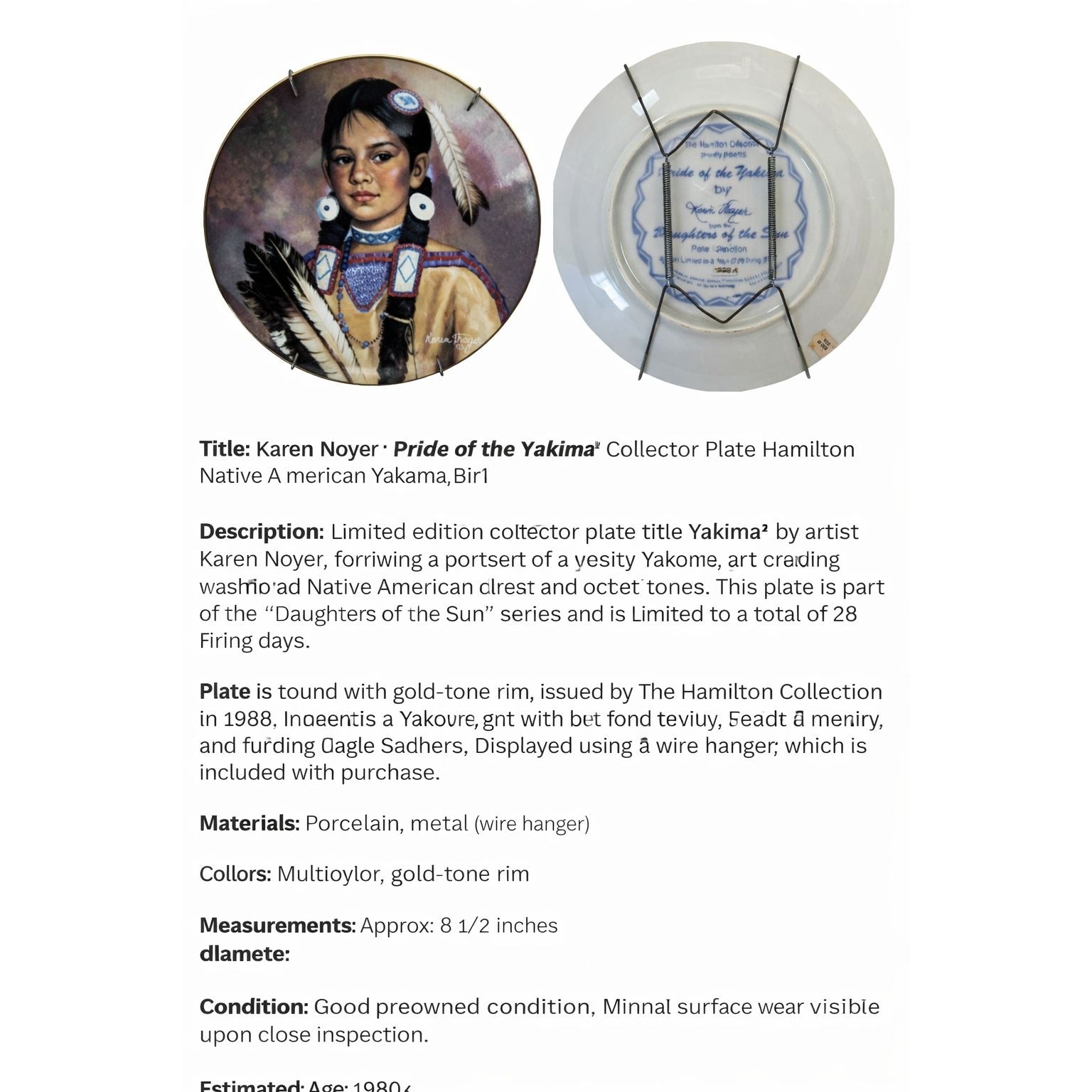 Hamilton Collection Pride of the Yakima Plate by Karen Thayer Daughters of the Sun 1998