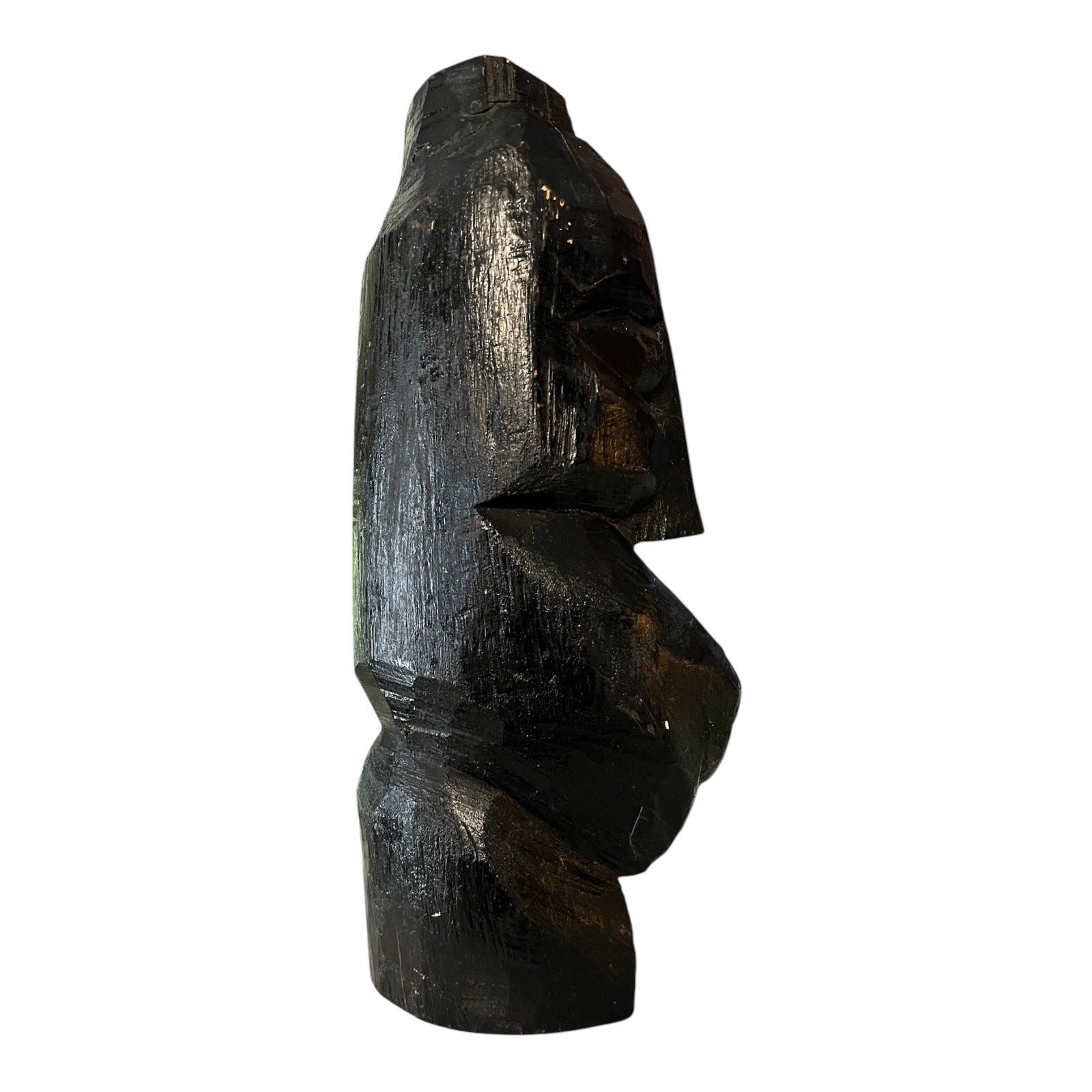 Hand-Carved Wooden Head Sculpture Folk Art Primitive Black Wood Bust