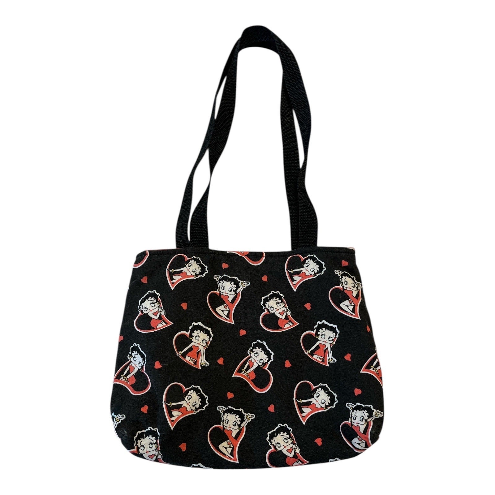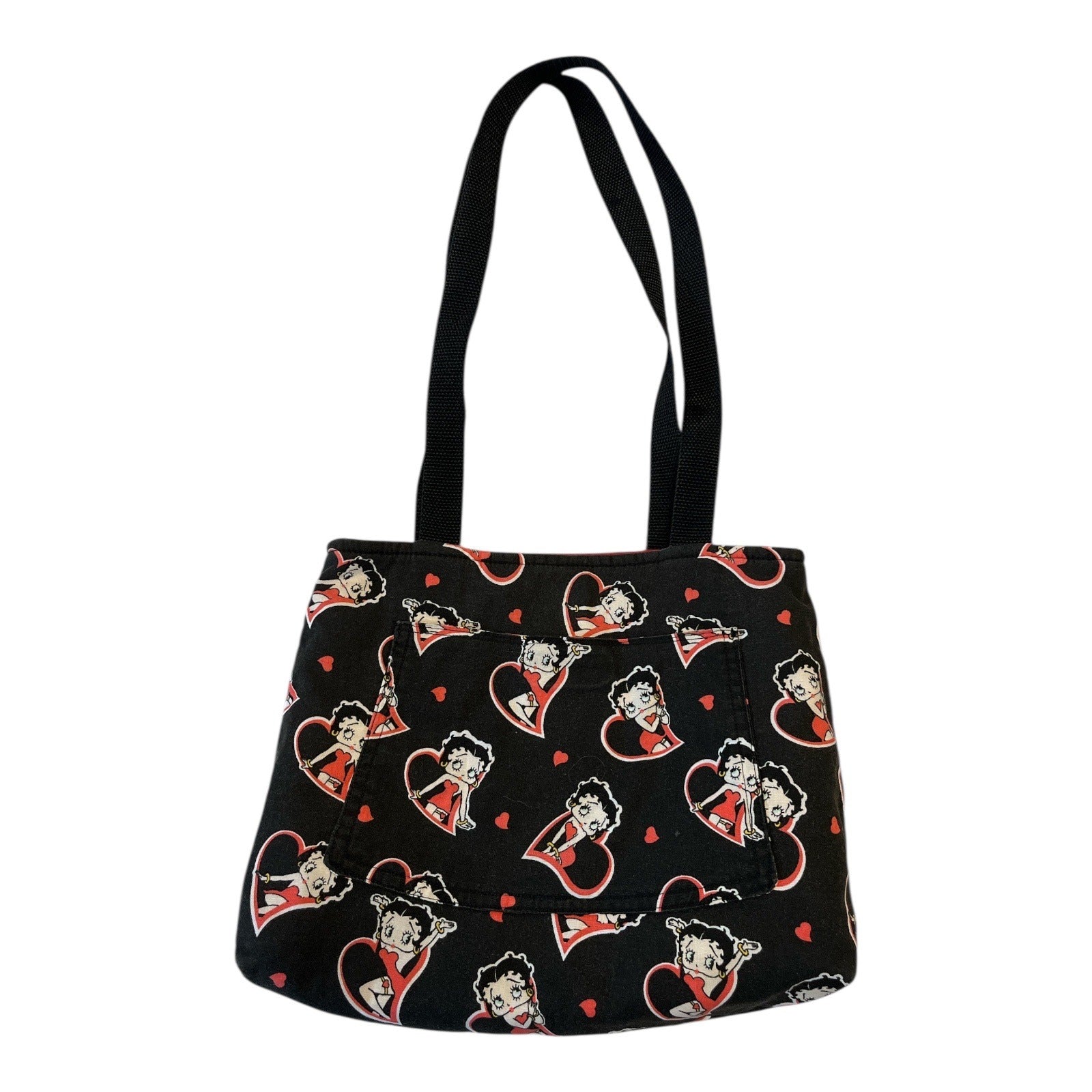 Handmade Betty Boop Shoulder Bag – Retro Cartoon Heart Print – Red Lining – 10 x 12 in – 12” Drop