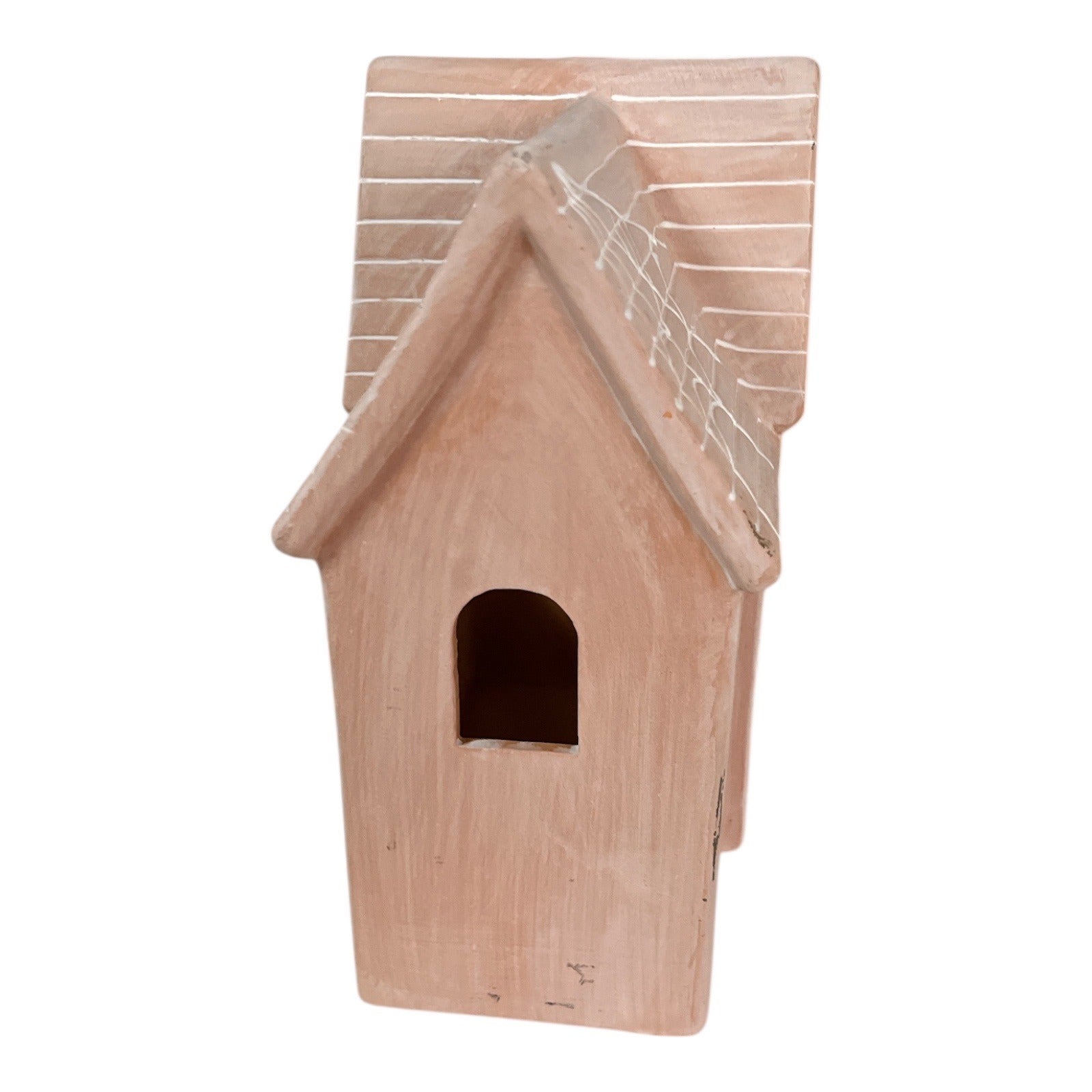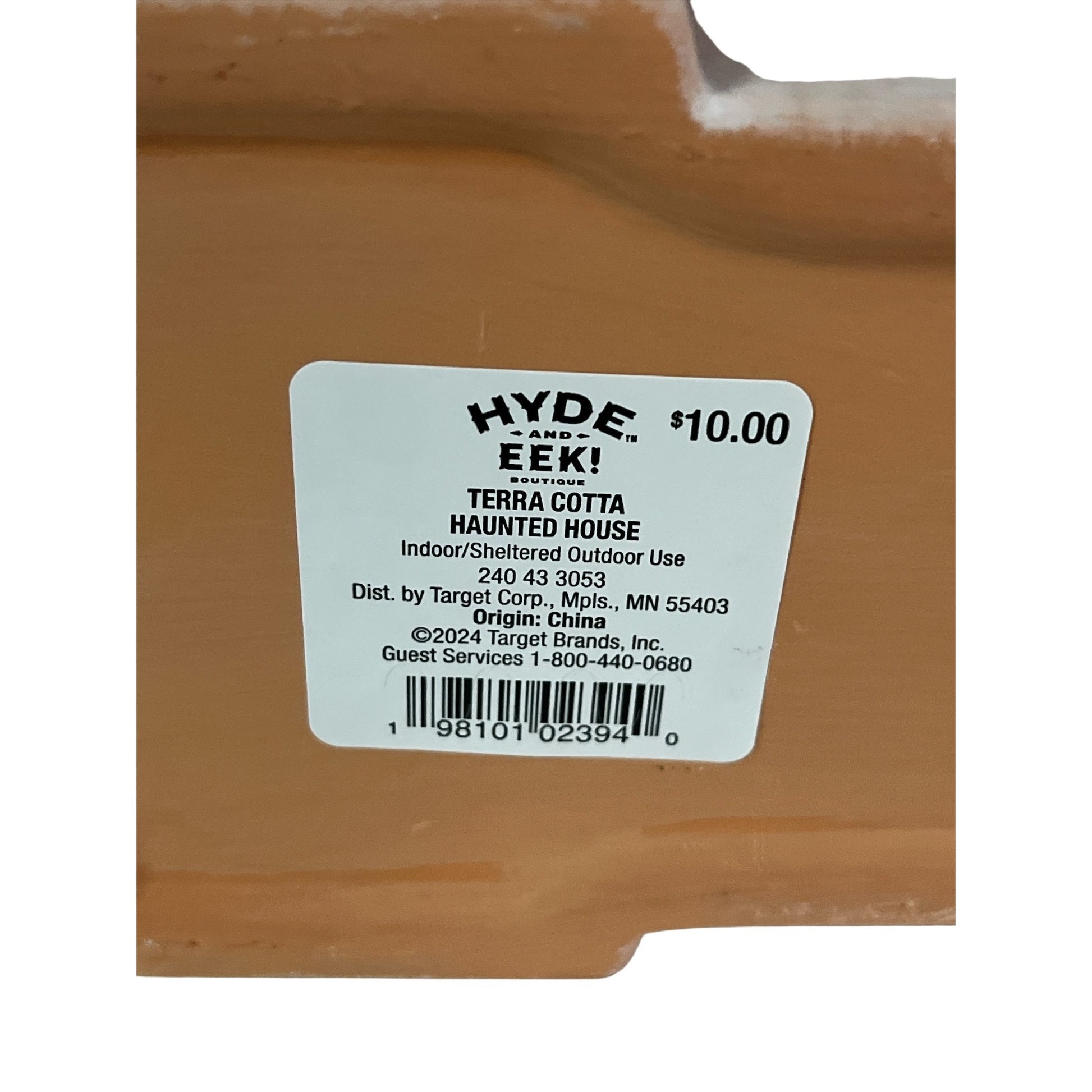Charming terra cotta haunted house from Target’s Hyde & EEK! Boutique Halloween collection. This neutral clay house features hand-painted white roof lines and a whimsical spiderweb detail, with multiple cutout windows and doors that glow beautifully when a candle or LED light is placed inside. Designed for indoor or sheltered outdoor use, it works well as tabletop décor, mantel display, or part of a Halloween village scene.