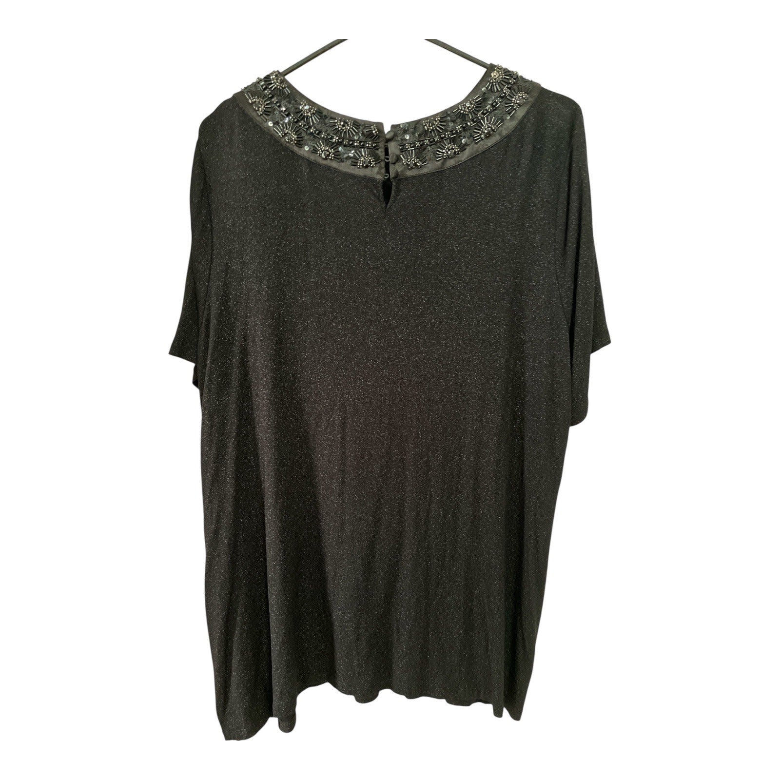 INC International Concepts Woman 2X Black Beaded Collar Top – Sparkle Knit, Short Sleeves