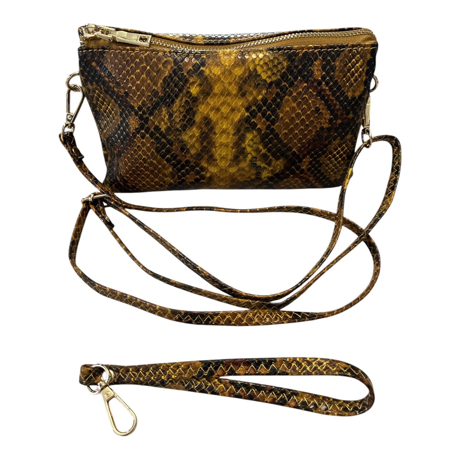 Jenn & Co. Snake Print Crossbody Bag – Faux Leather Clutch – Gold-Tone Hardware