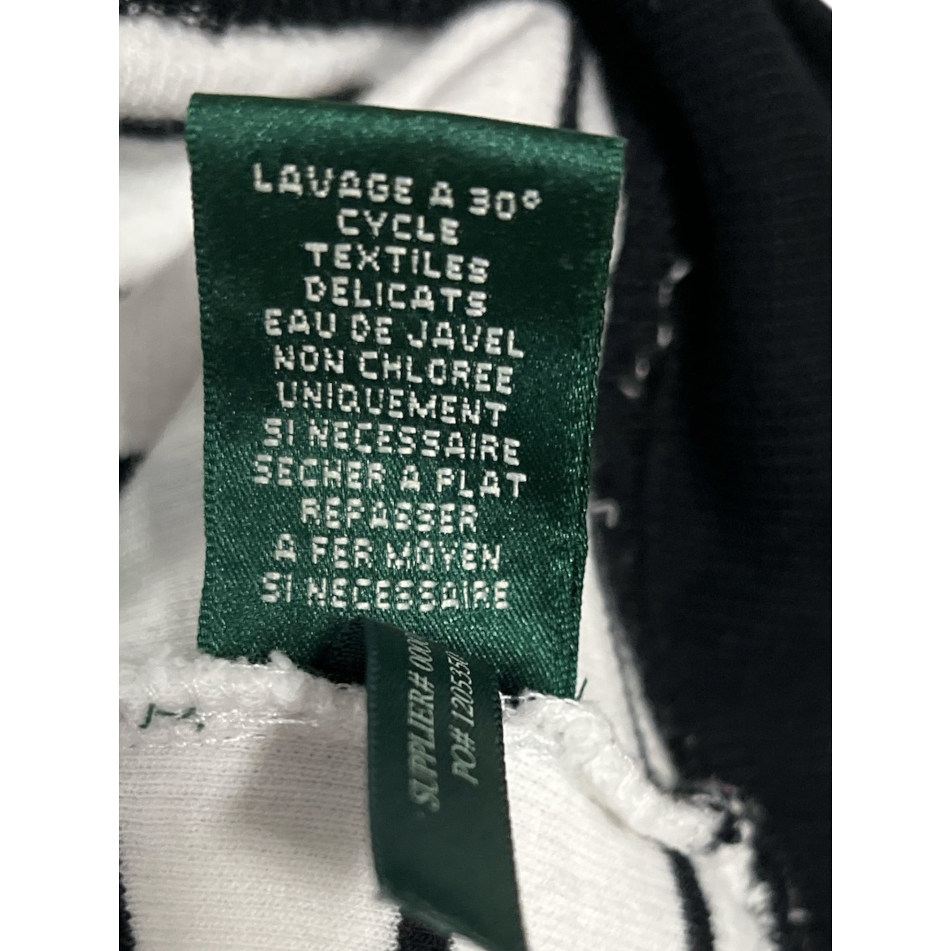 Classic and timeless, this **Lauren Ralph Lauren** women’s pullover is a versatile piece perfect for casual or nautical-inspired style. Featuring a crisp white base with black horizontal stripes, it’s finished with a contrast black collar and button placket with silver crest-embossed buttons.