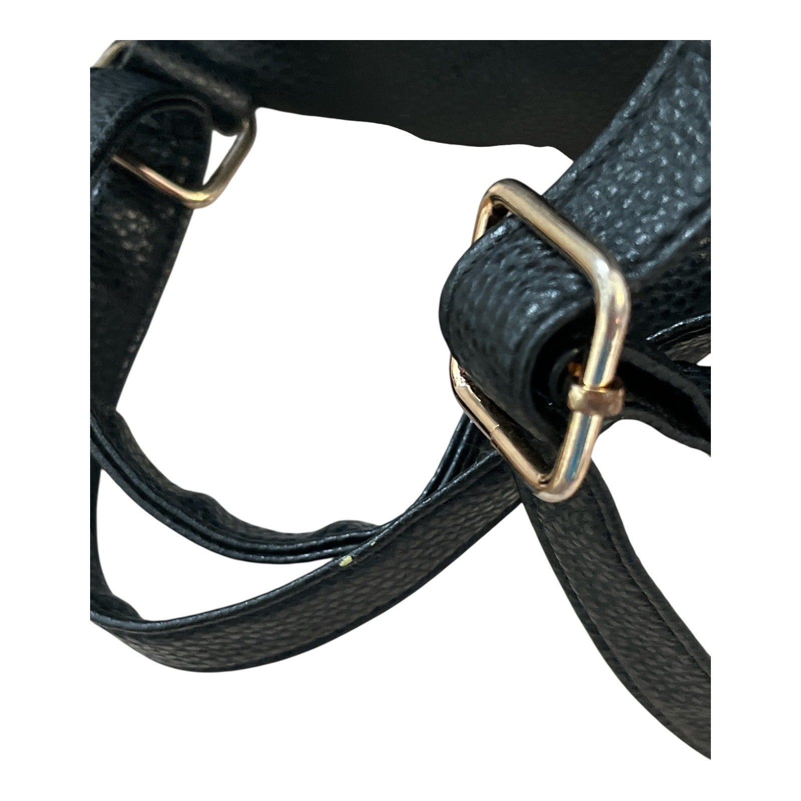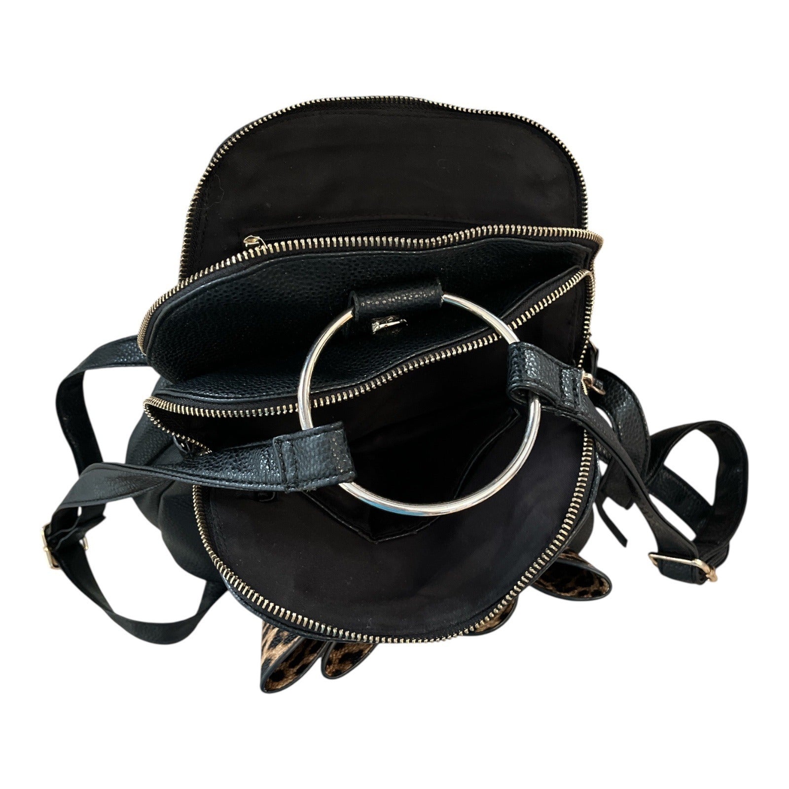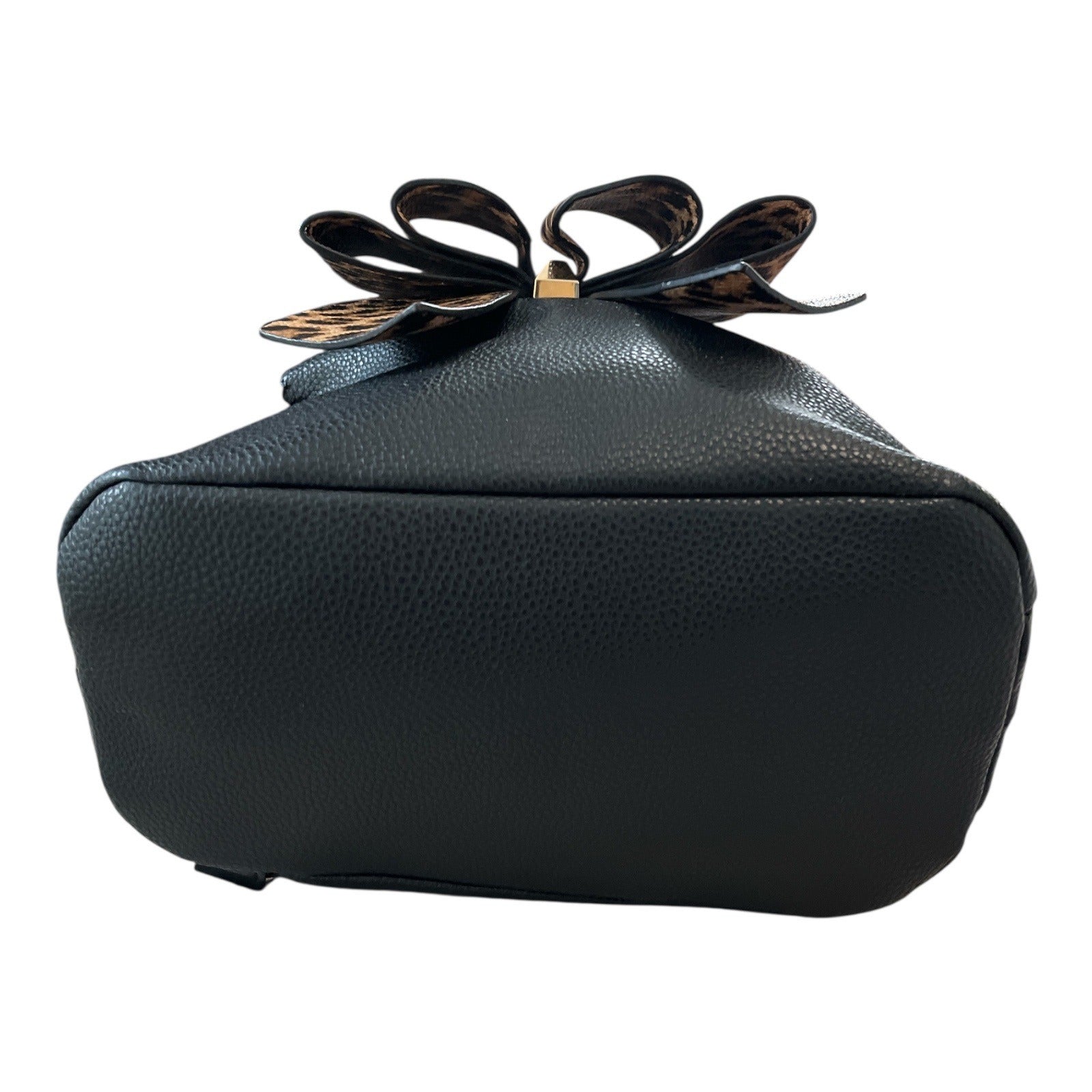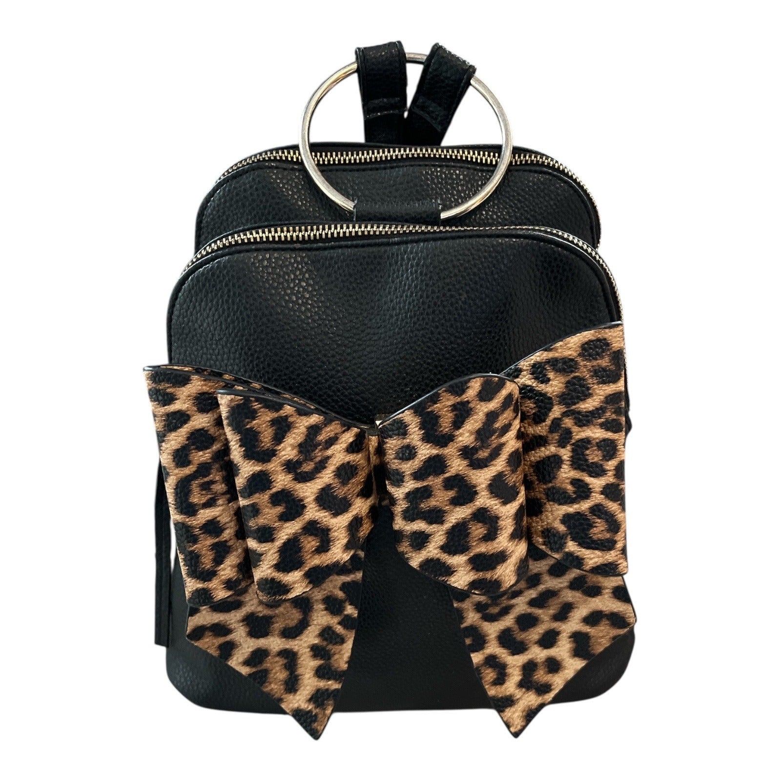 Like Dreams Faux Leather Mini Backpack with Leopard Print Bow – Black – Double Zip Compartments – Ring Handle – 11” x 10” x 6”