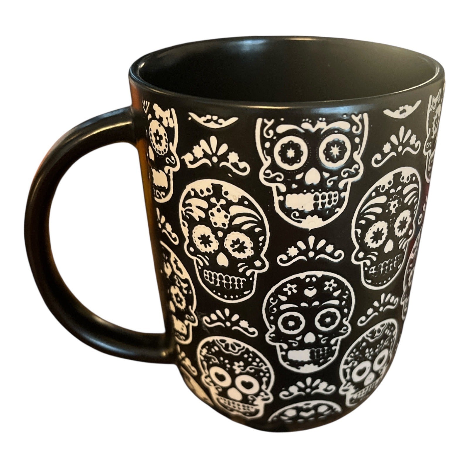 Market Finds MRKT Black Sugar Skull Mug – Dia de los Muertos Halloween Gothic Coffee Cup – 3.5" x 5"