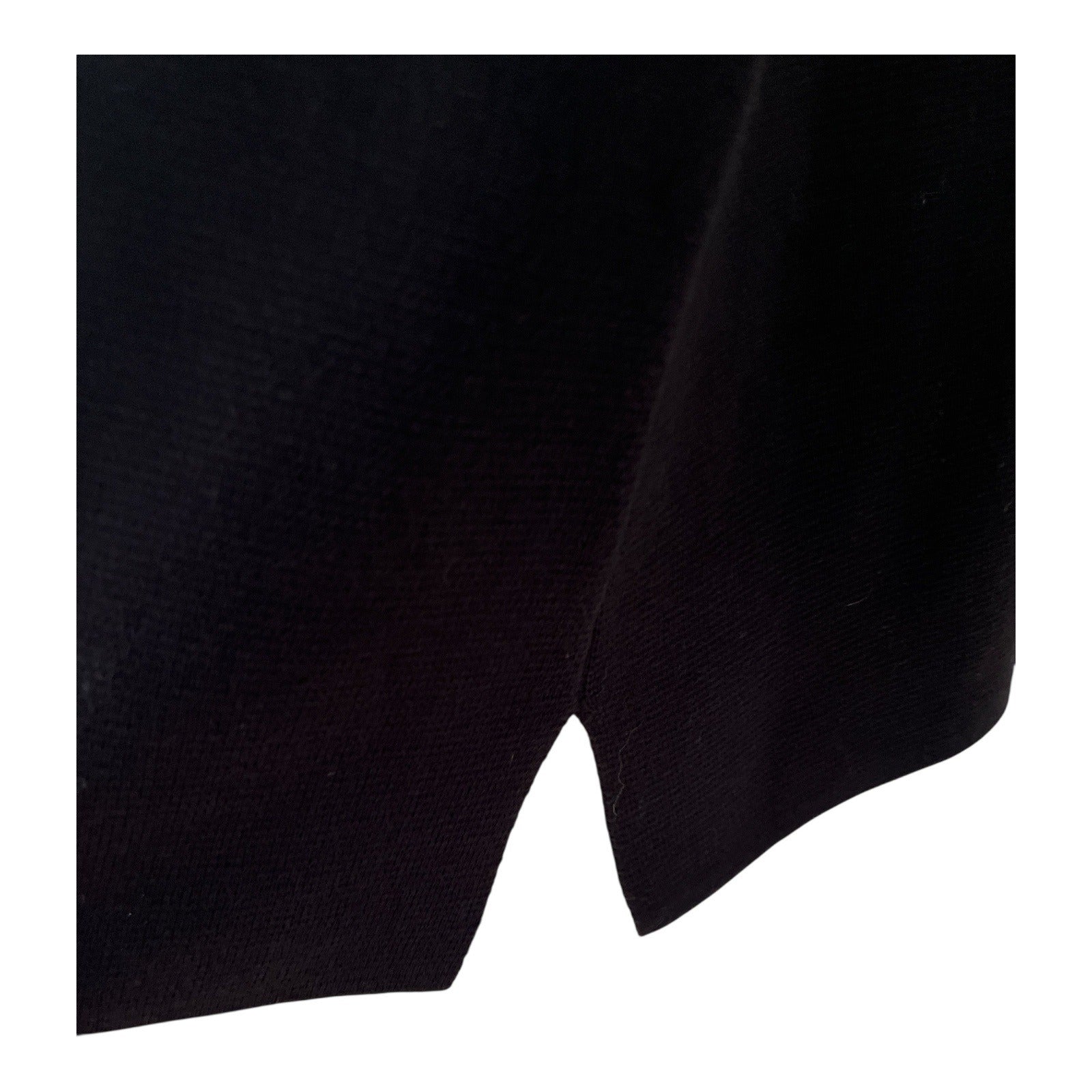 Elevate your wardrobe with this Marla Wynne sweater dress, featuring a minimalist design in a rich black double-knit fabric. Made from a soft and substantial blend of 60% cotton and 40% viscose, this dress offers comfort and structure. It features a scoop neckline, long sleeves, and small side slits at the hem for ease of movement. New with tags.