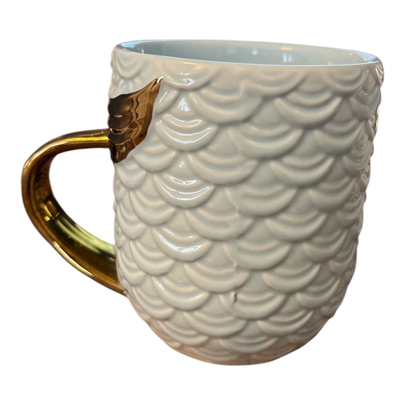Mermaid Tail Handle Ceramic Mug – Light Blue Scales with Gold Fin – 4 x 3.25" – Fantasy Ocean Theme
