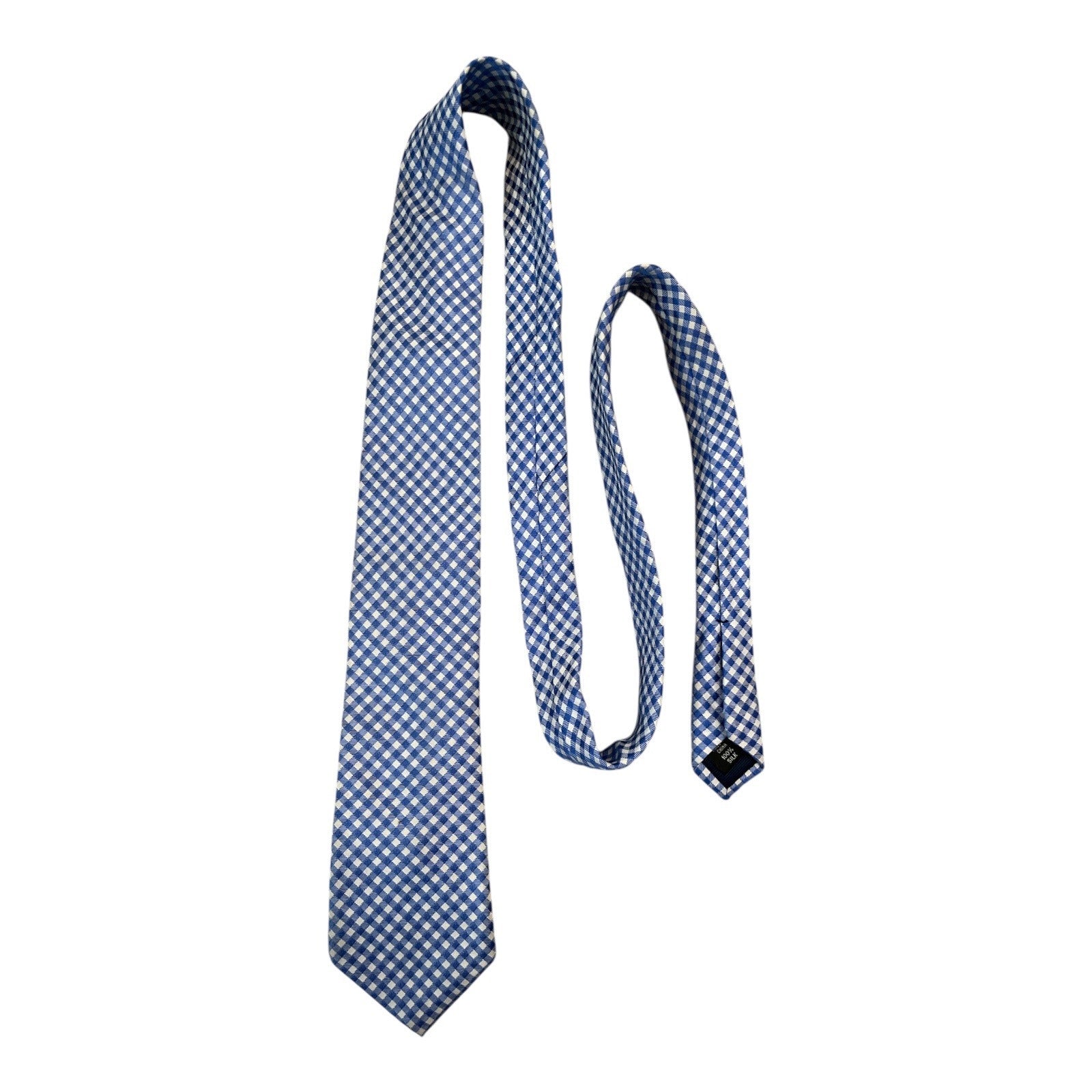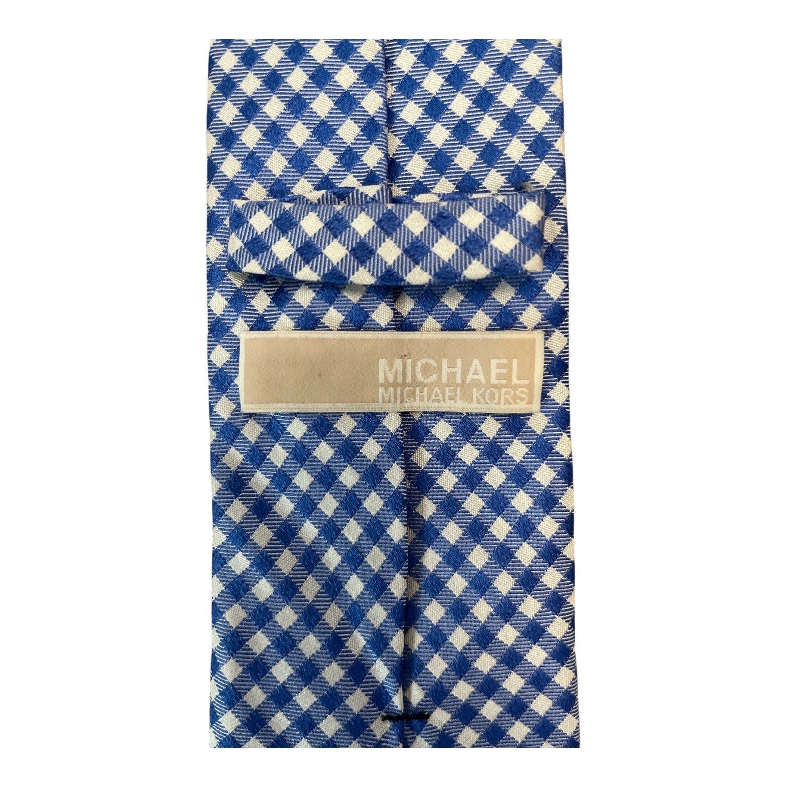 Michael Kors 100% Silk Tie – Blue & White Gingham Check – 58” – Made in China – c. 2010s