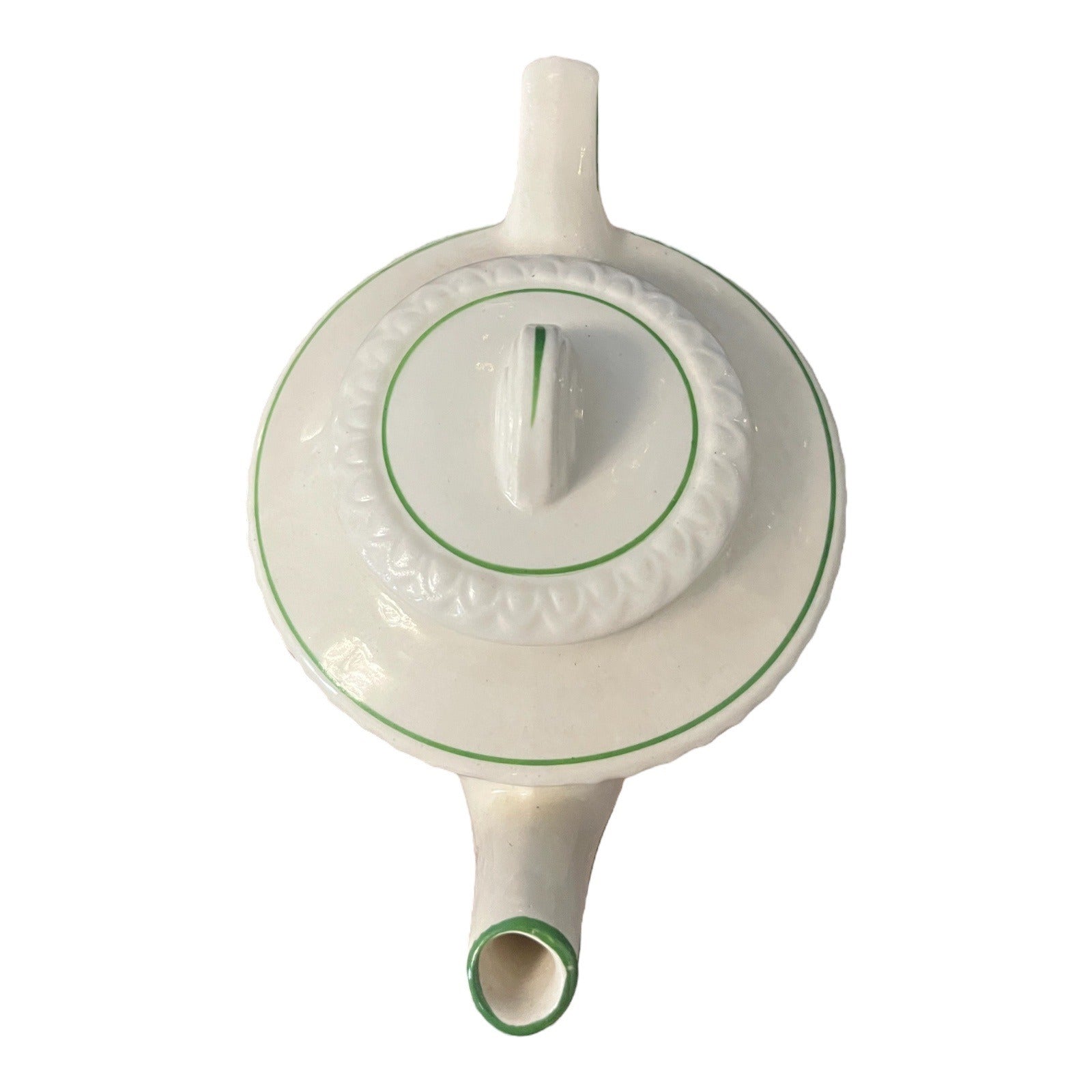 Mid Century English Floral Teapot – Made in England – Green Trim, Raised Band – 4.5 x 6" – Porcelain