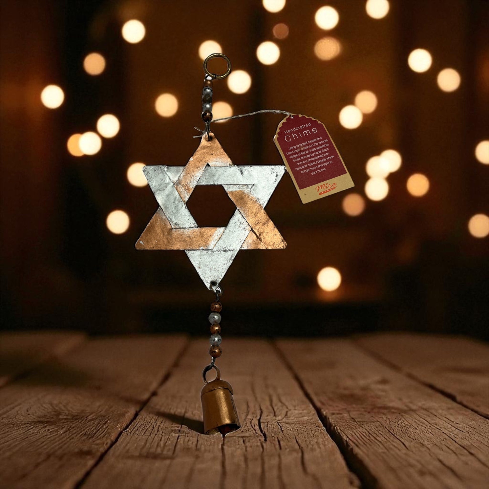 Mira Handcrafted Star of David Metal Chime – Copper & Silver Finish