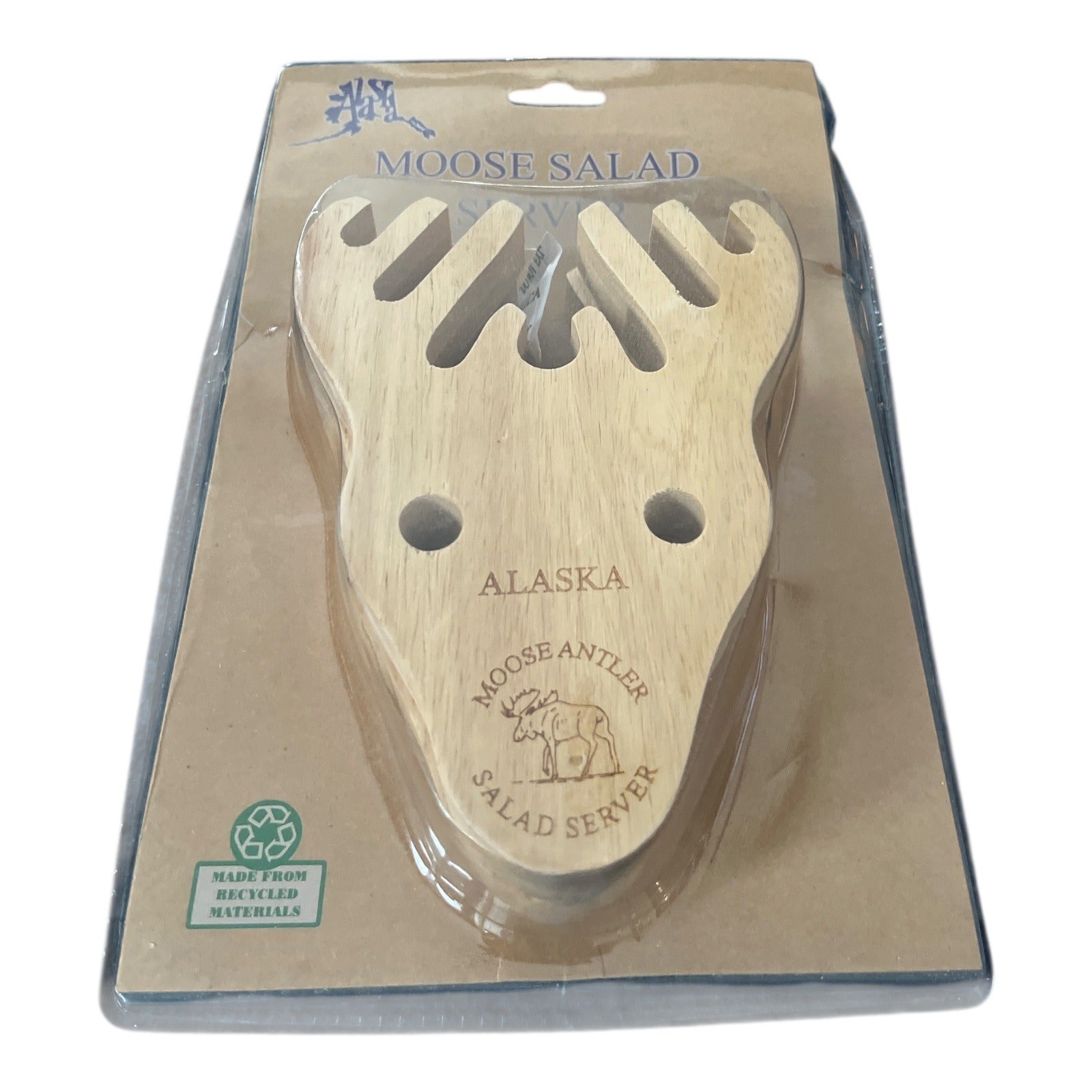 Add a touch of rustic charm to your kitchen with this moose antler-shaped salad server set, a fun and practical souvenir from Alaska. Designed by Alaskans and made from recycled materials, this item is brand new in sealed packaging from the Ulu Company. Ideal for salads or pasta, these servers measure approximately 6.5 x 5 inches and feature the engraved words “Alaska” and “Moose Antler Salad Server.”