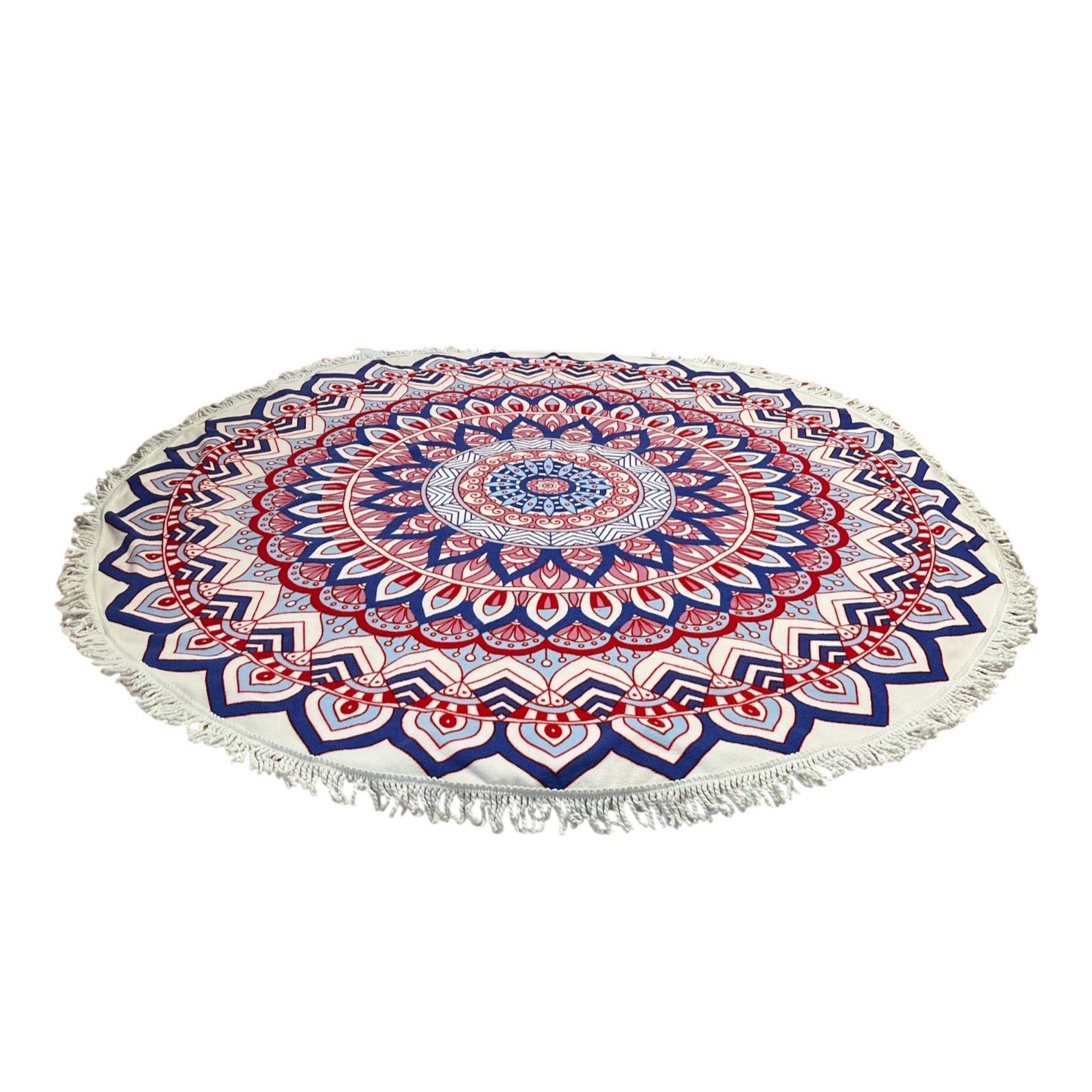NWT Swim by Cacique Lane Bryant Round Mandala Beach Towel – 61” Red White Blue Fringe Boho Festival Blanket