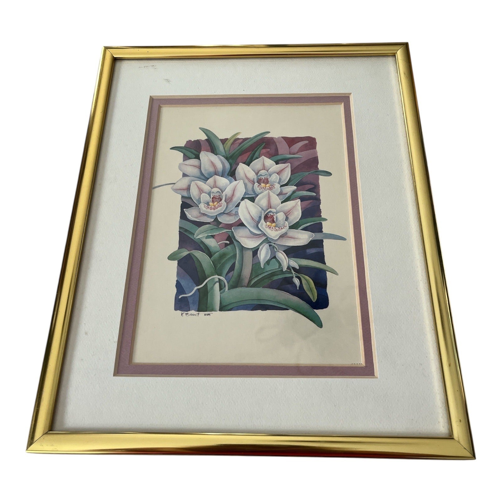 Pair of Paul Brent Orchid Prints – Matted & Framed – Signed in Plate, 2001