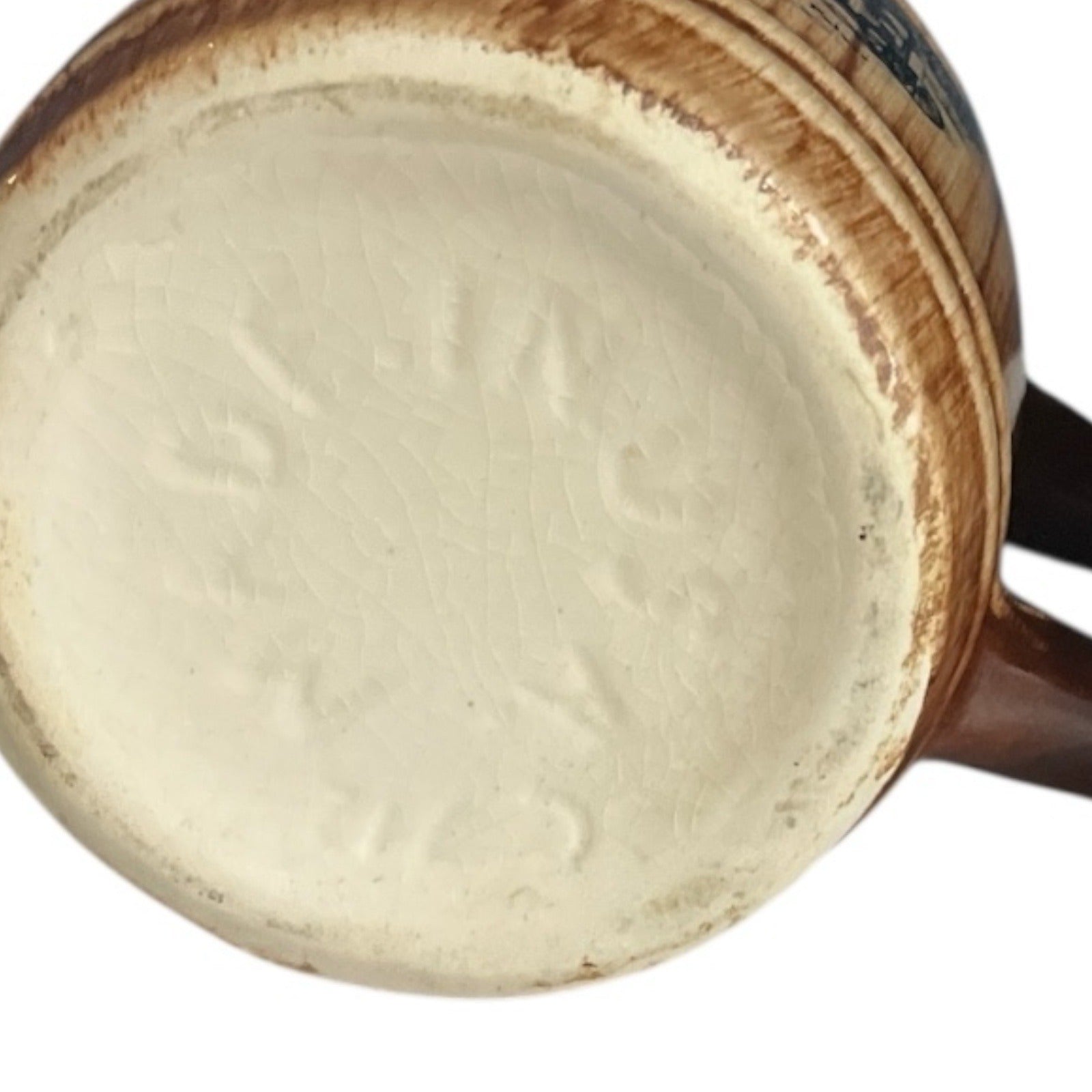 Bring a touch of colonial charm to your kitchen or bar with this pair of vintage ceramic barrel mugs from Williamsburg, Virginia. Featuring a rich woodgrain finish and branch-style handles, each mug is adorned with an illustration of The Governor's Palace and marked “Williamsburg, Va.” These collectible mugs are perfect for display, sipping cider, or adding to your Americana decor.