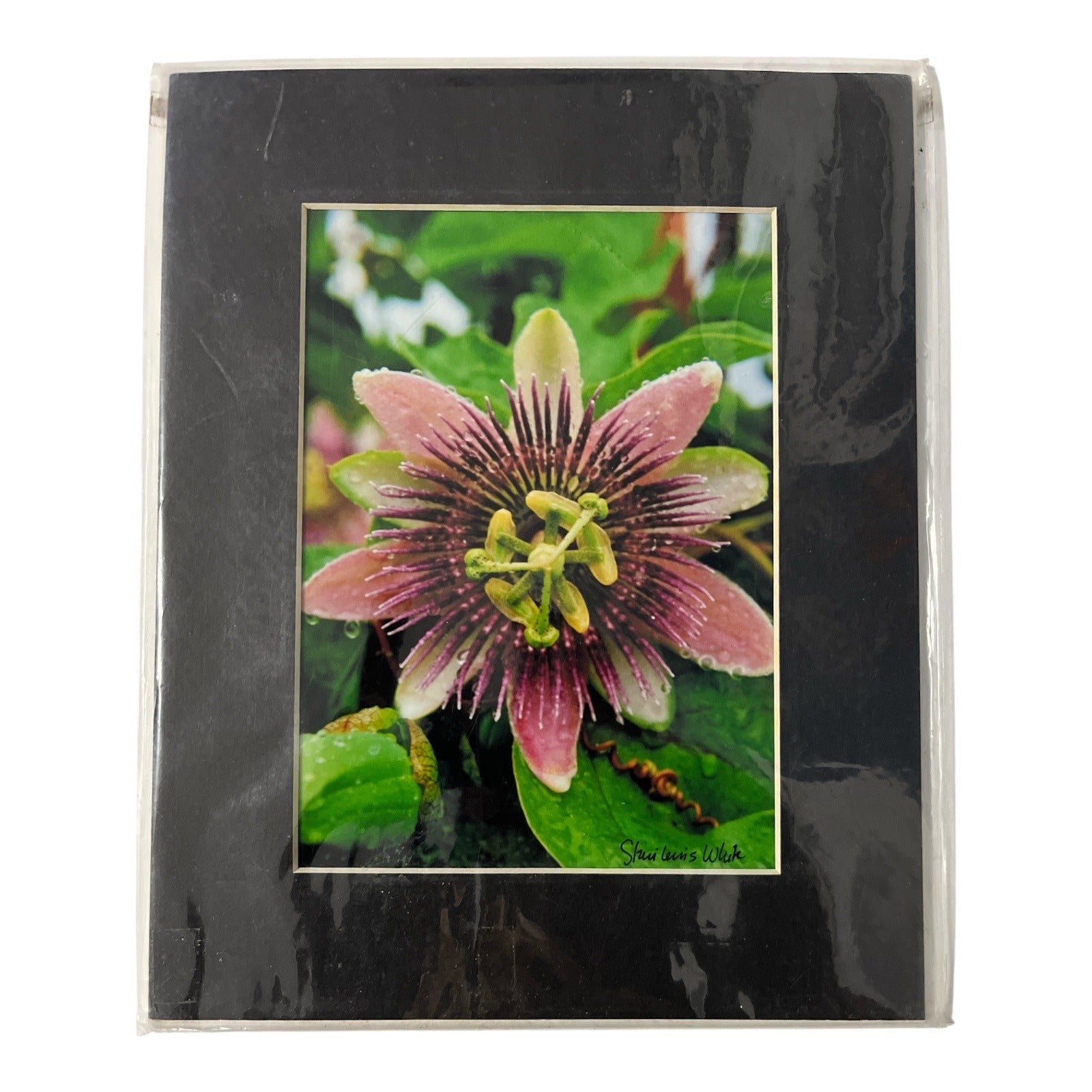 Beautiful 8x10 matted floral photography print by regional Florida photographer **Staci Lewis White** of Destination Earth Photography. The image features a vivid passion flower in full bloom, captured with fine detail and rich colors. Signed by the artist and originally acquired in Spring Hill, Florida, this piece carries a unique local provenance.