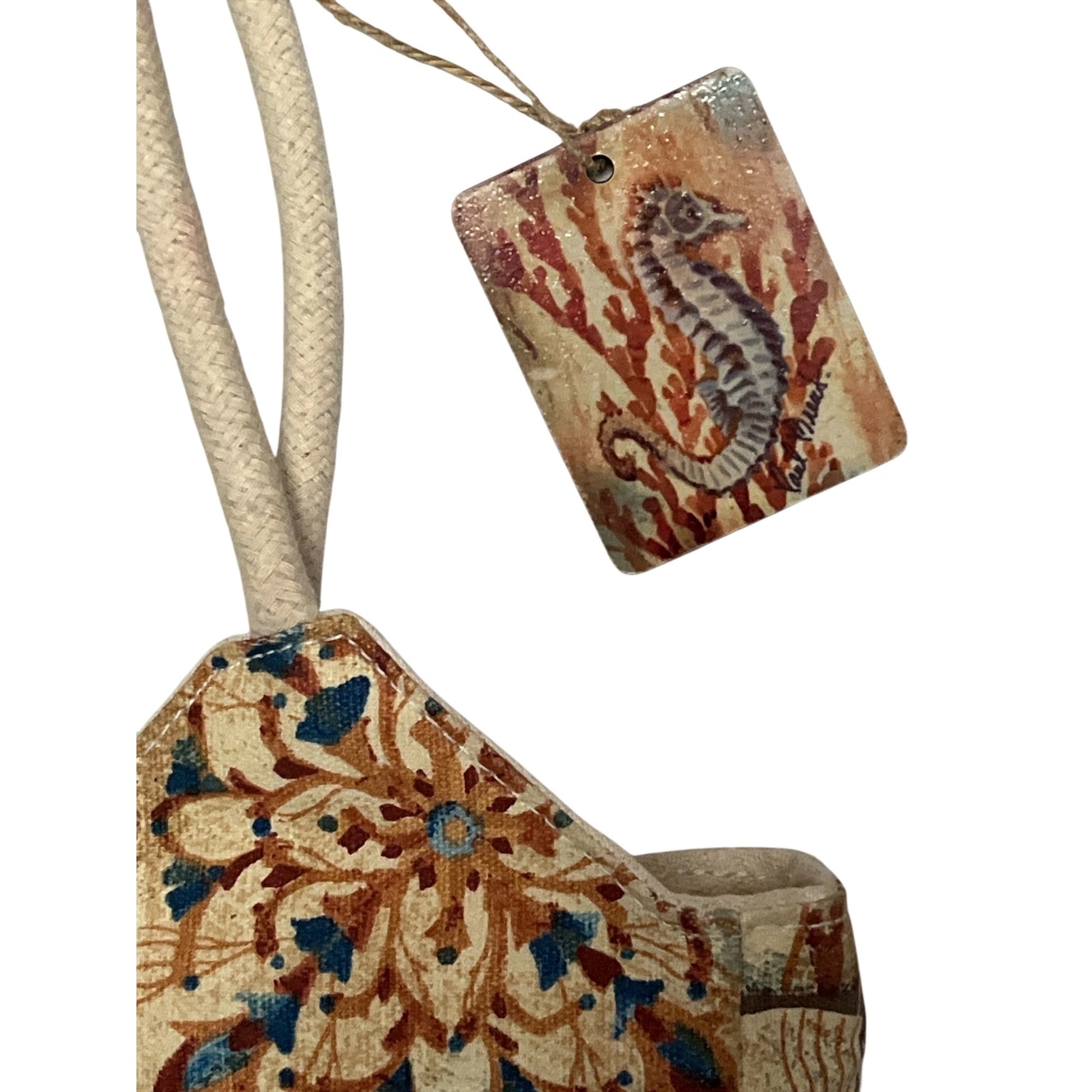 Seahorse, starfish, shell, and coral motifs