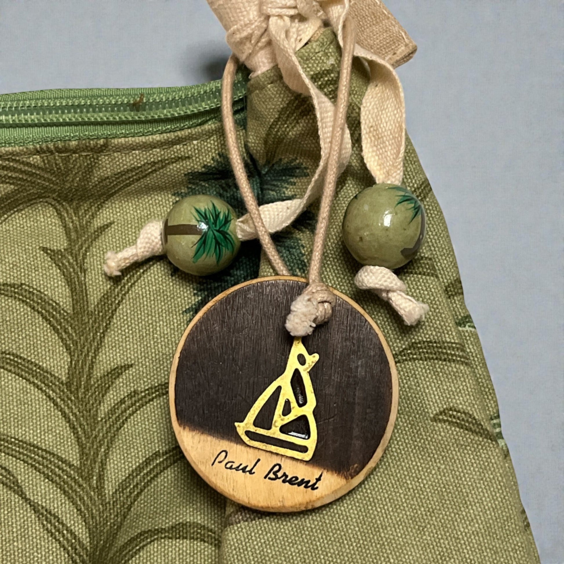 Decorative wooden charm and bead accents