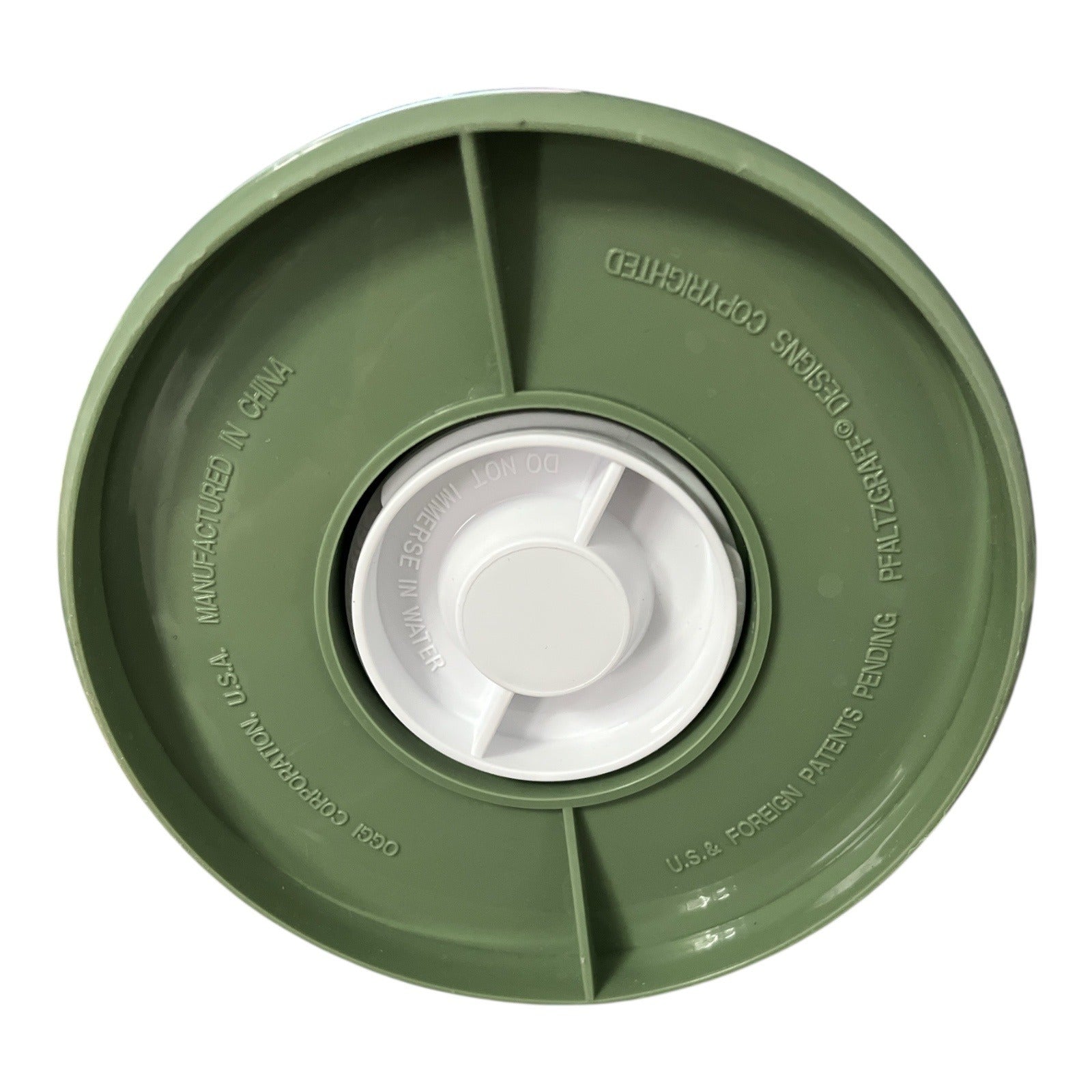 Serve in timeless style with this vintage Pfaltzgraff thermal carafe featuring a charming fruit and leaf design around a cream-colored body and green lid. Designed to keep beverages hot or cold, it has a twist-top lid and insulated glass interior. Made in China by Pfaltzgraff and marked on the lid with patent information.