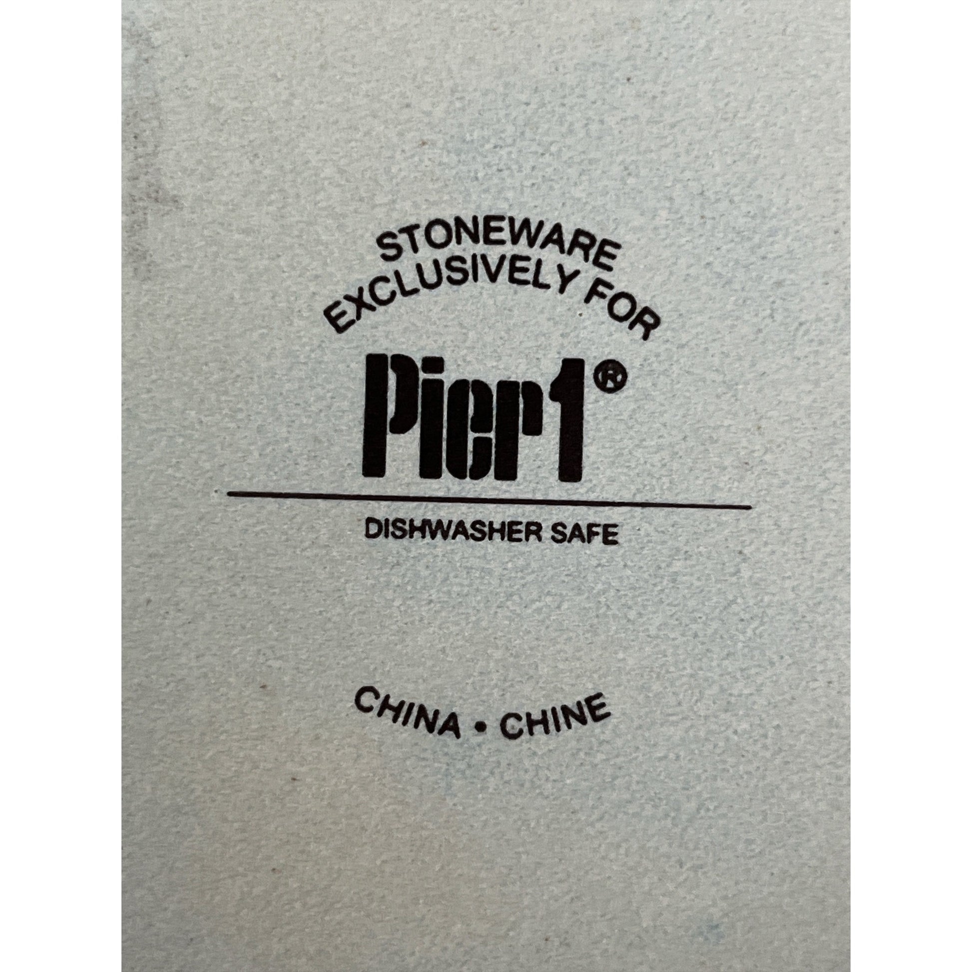 Elegant vintage stoneware teapot made exclusively for Pier 1 Imports. This soft blue ceramic teapot features a raised square-dotted texture and a natural bamboo handle for an organic, modern look. Perfect for tea service or as a decorative accent in a cozy kitchen or boho-style display.