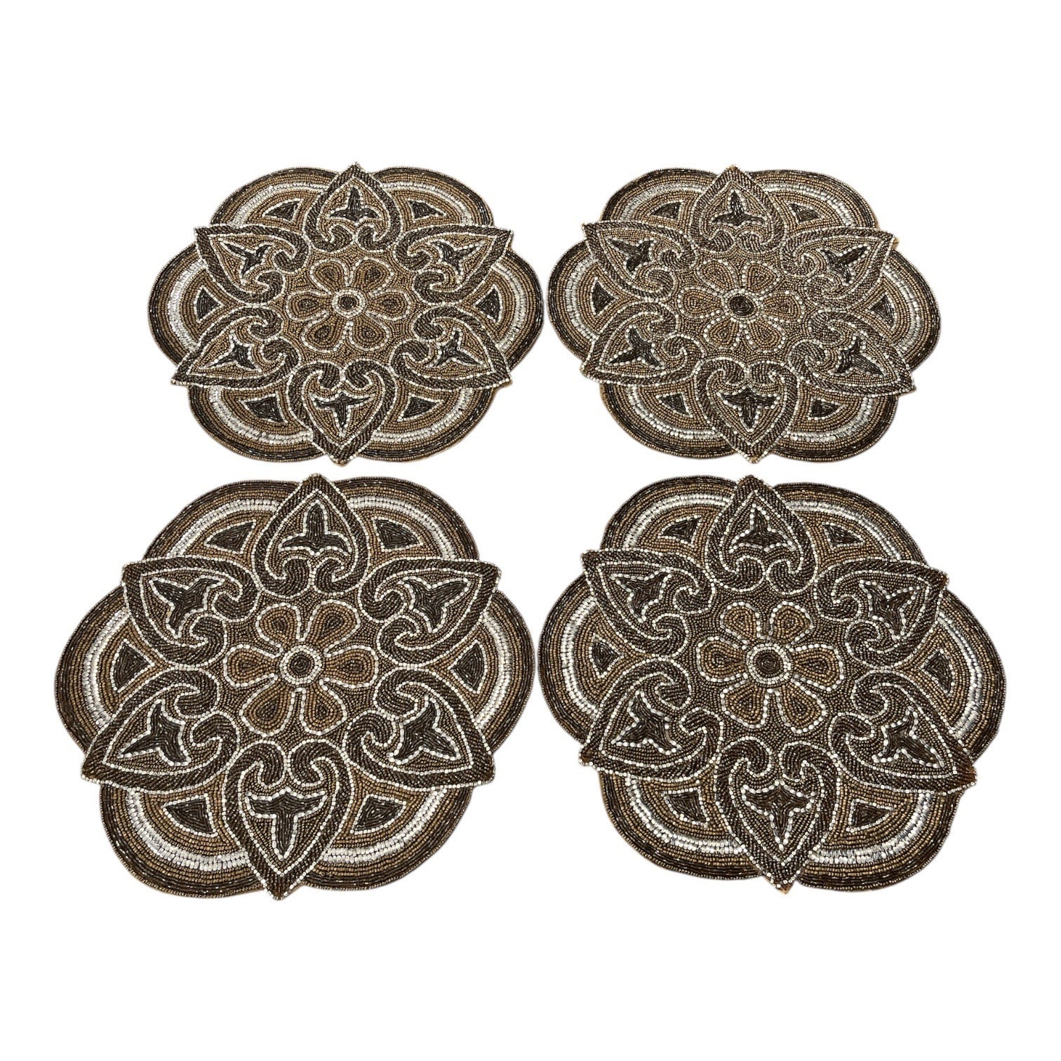 Pier 1 Imports Beaded Mandala Placemats Set of 4 Gold Silver Round Table Decor