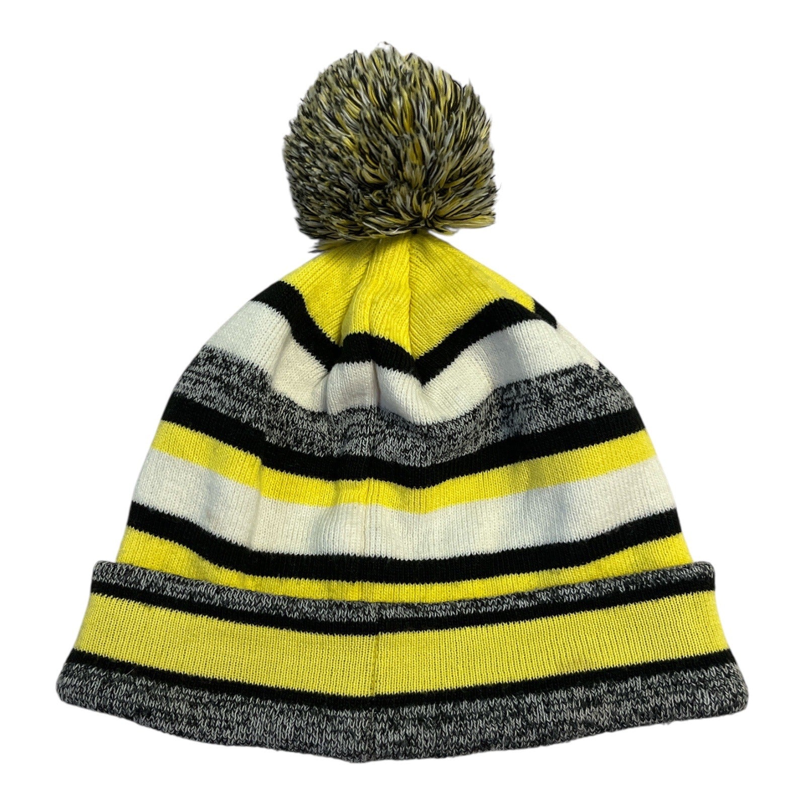 Pittsburgh Striped Pom Beanie – Black, Yellow, White Knit Winter Hat – Unisex – DAS Companies – 1SFM