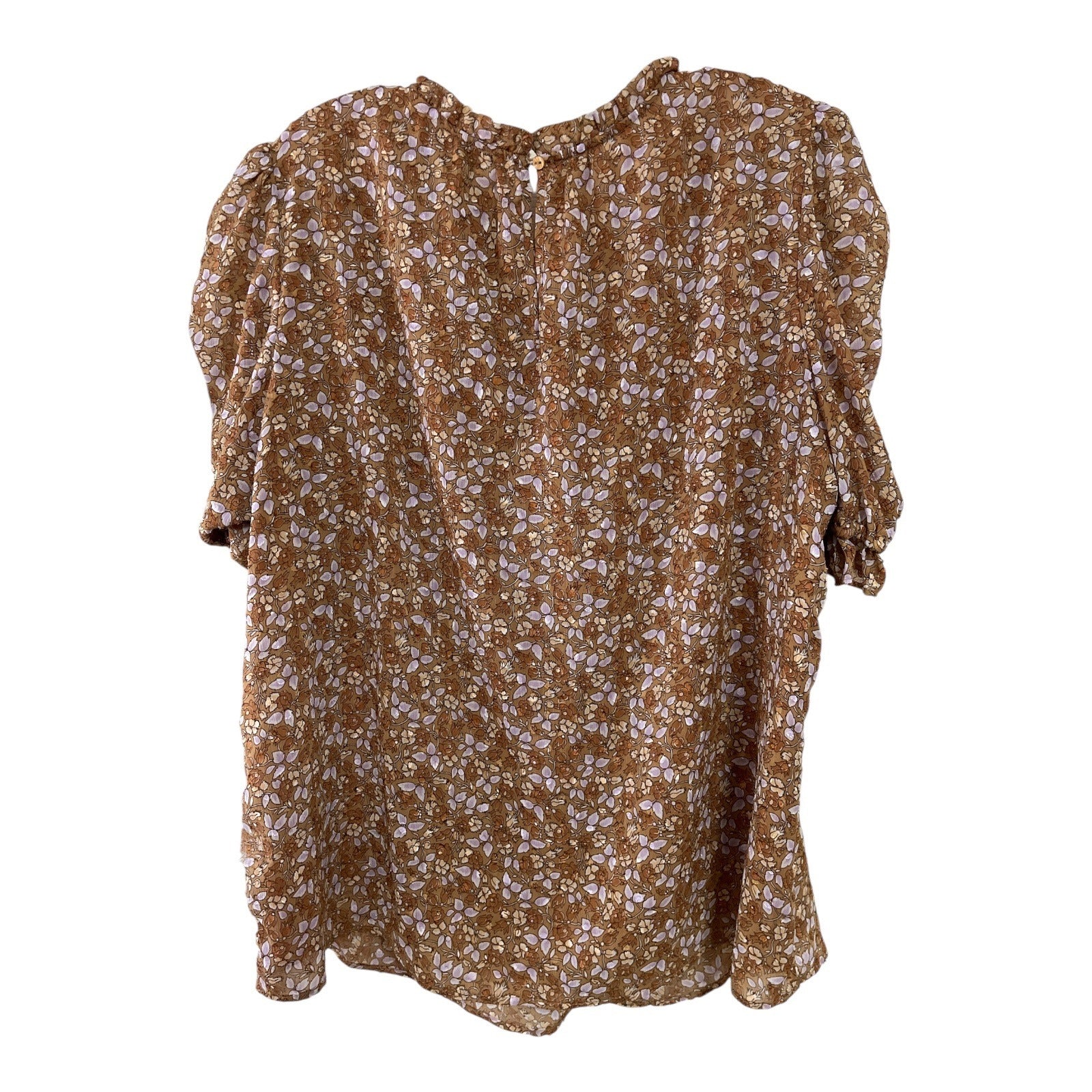 Rachel Zoe Women’s XL Puff Sleeve Floral Blouse Brown Lavender – Needs Minor Seam Repair