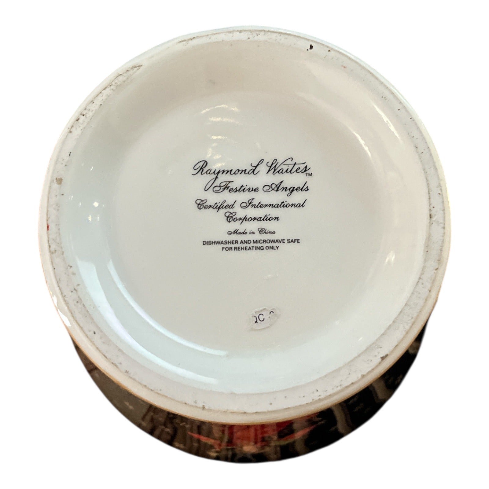 Raymond Waites “Festive Angels” Pedestal Bowl – Certified International – Christmas Angel Design